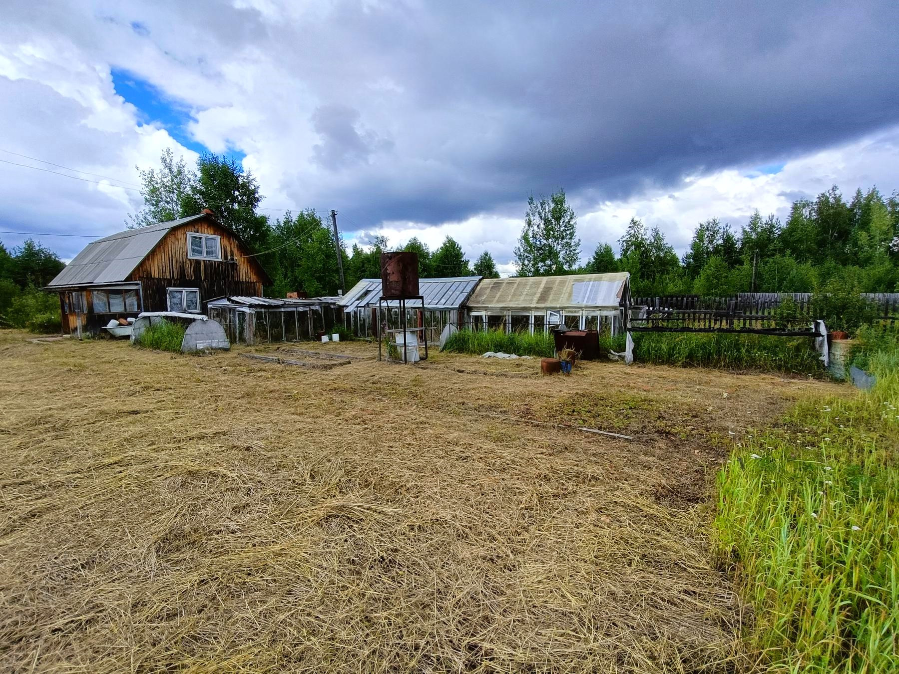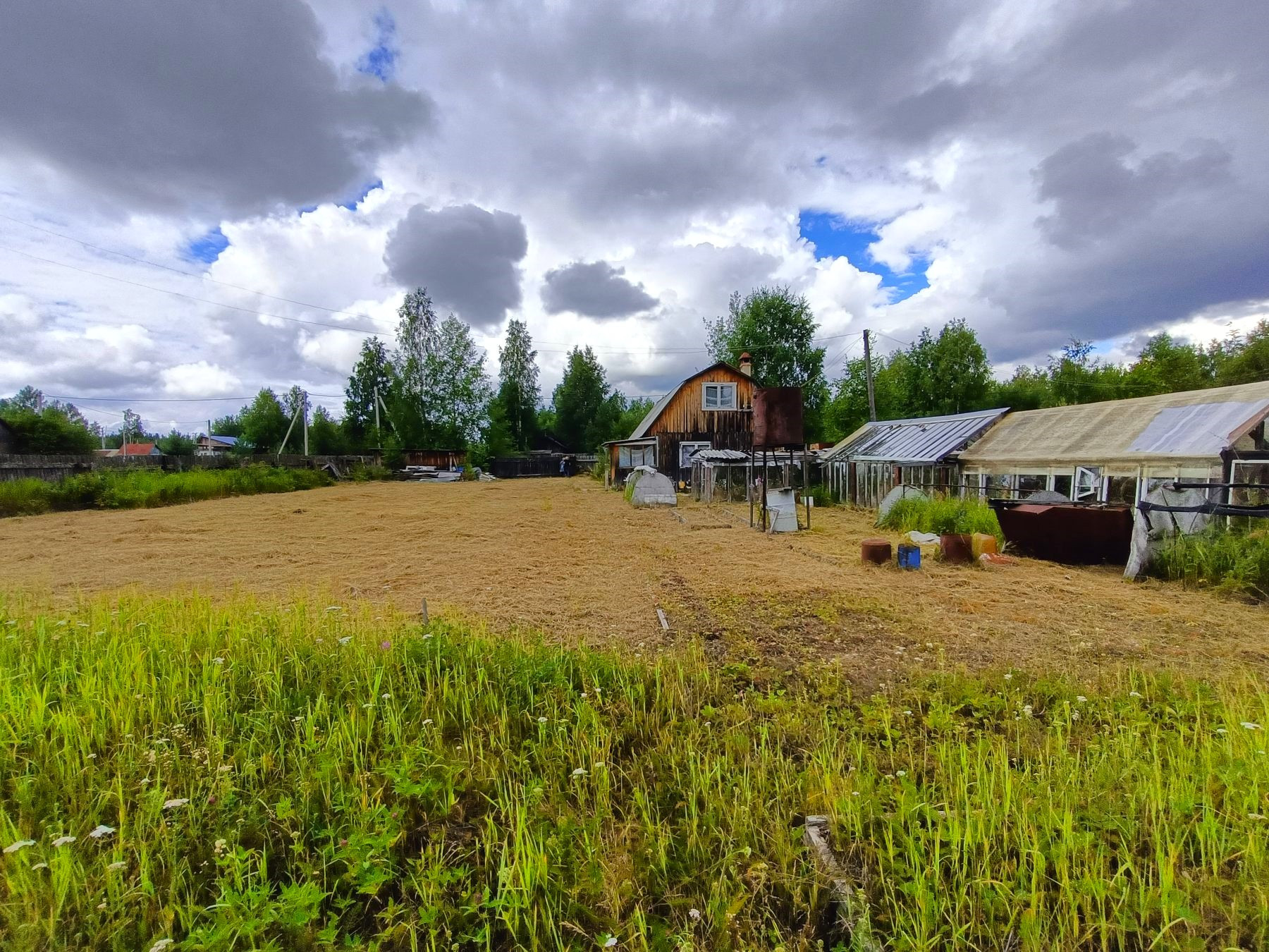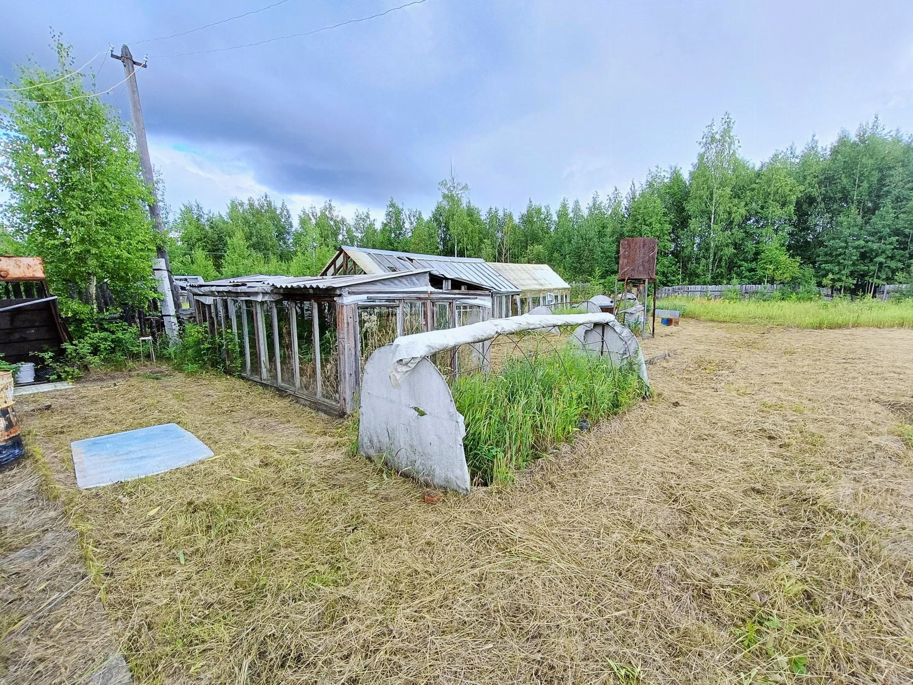 На участке имеются теплицы для посадки сезонных овощей, сарай и туалет.