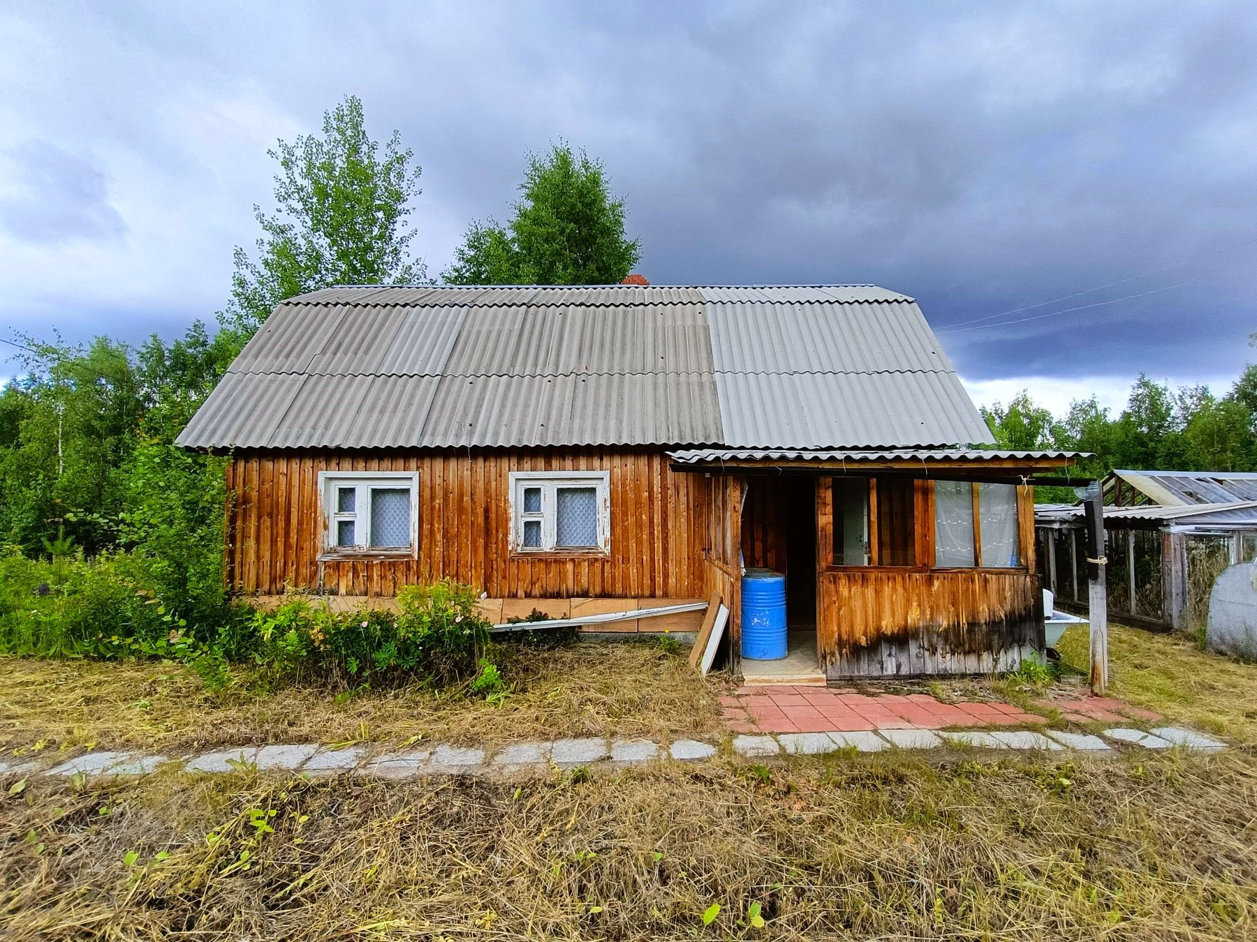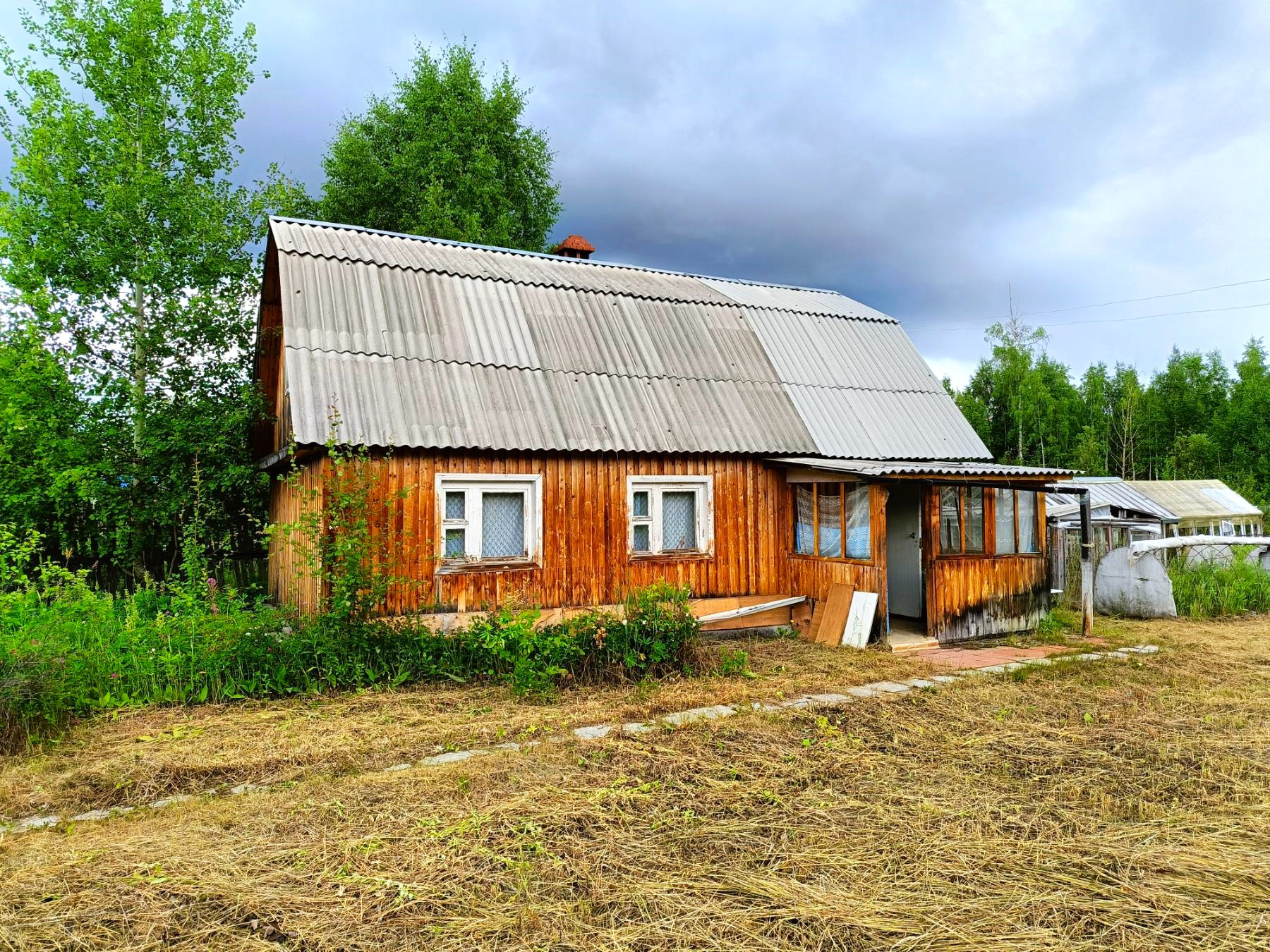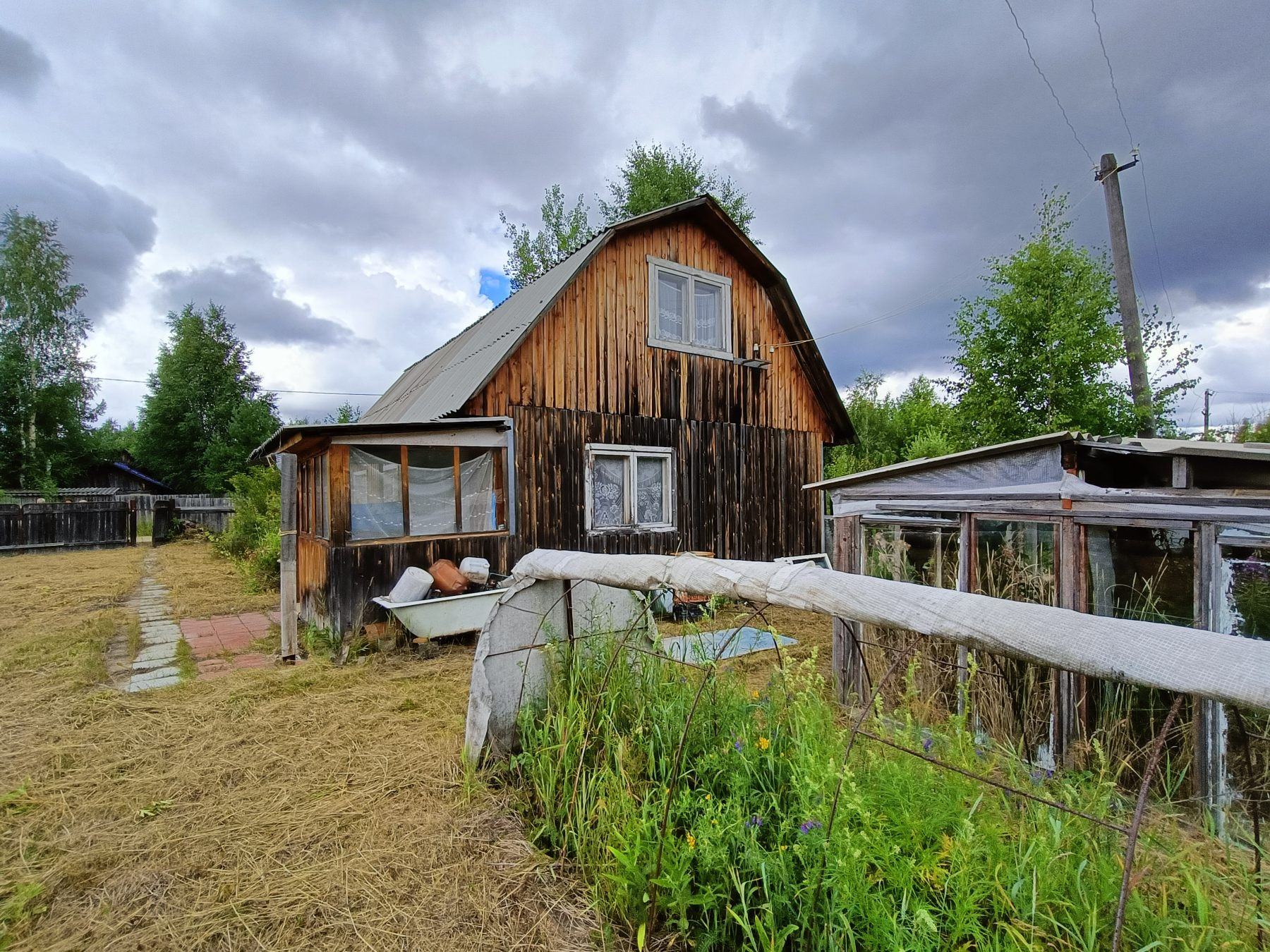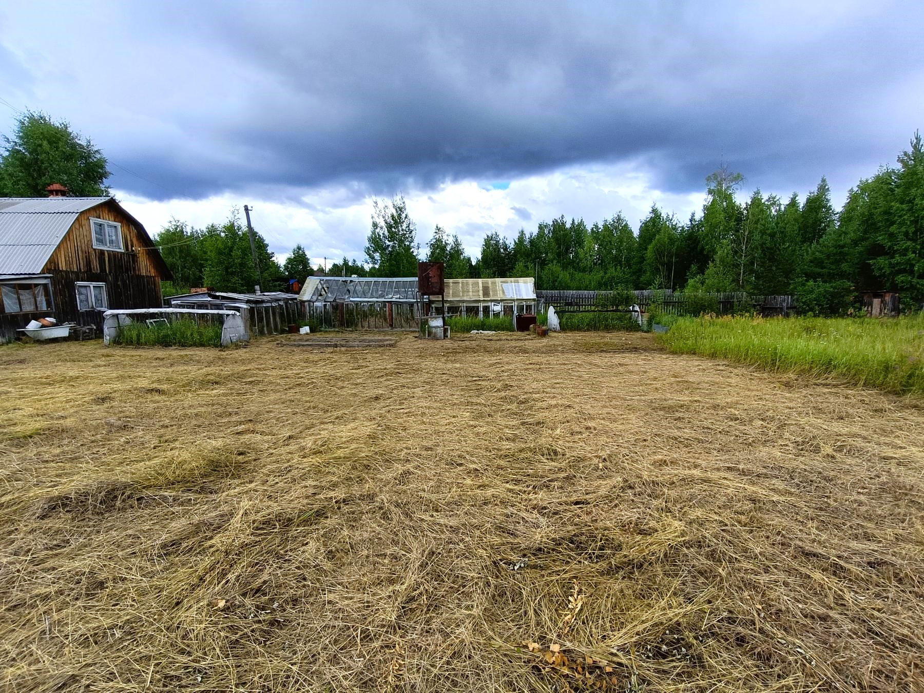 На участке имеются теплицы для посадки сезонных овощей, сарай и туалет.