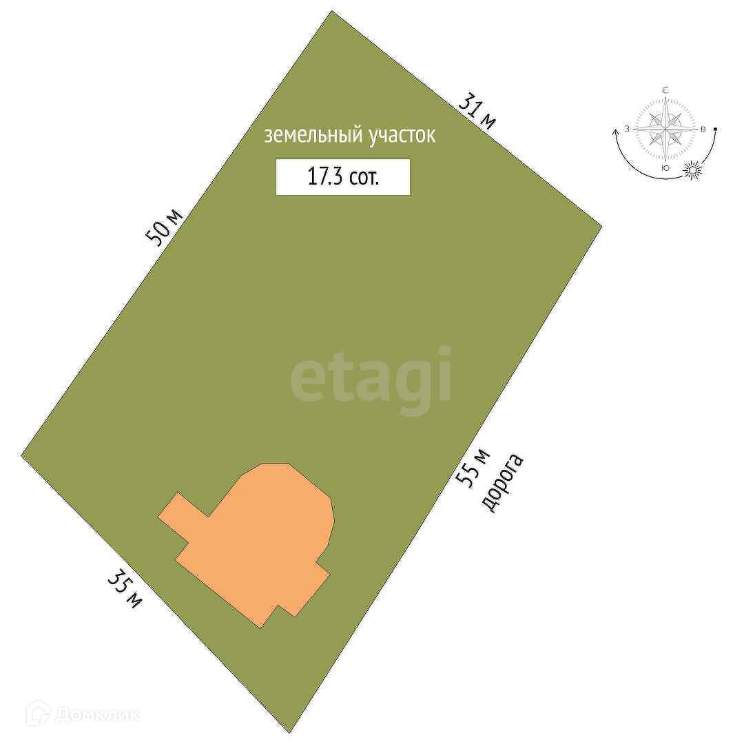 Площадь участка 17.3 сот.