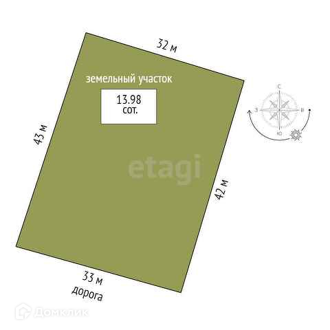 Площадь участка 13.98 сот.