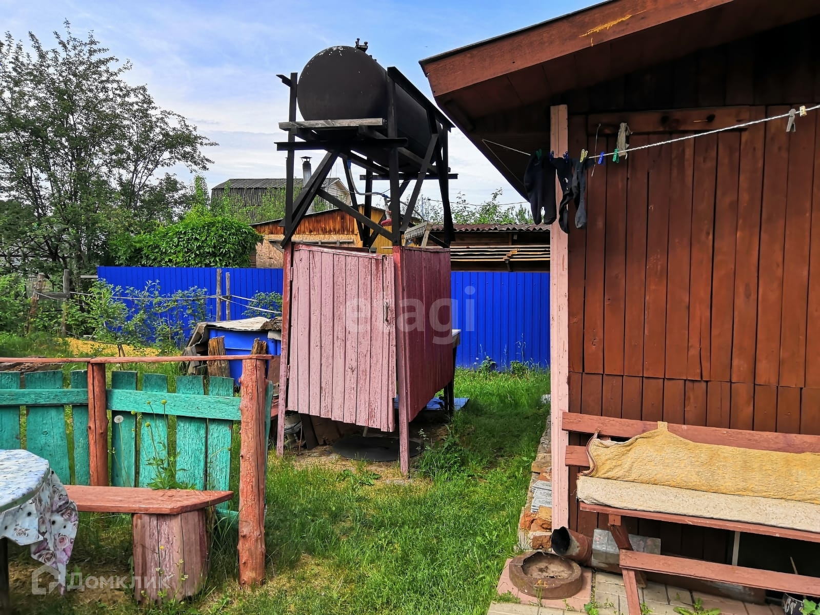 Есть летний душ, уличный рукомойник. Бак под воду закрытый и окрашен в чёрный цвет для лучшего прогрева воды. Туалет уличный. На участке три теплицы 11 метров, 6 метров и 5 метров. Сад полностью засажен и облагорожен. Приобретая участок сегодня, вы будете обеспечены солидным урожаем уже этой осенью.