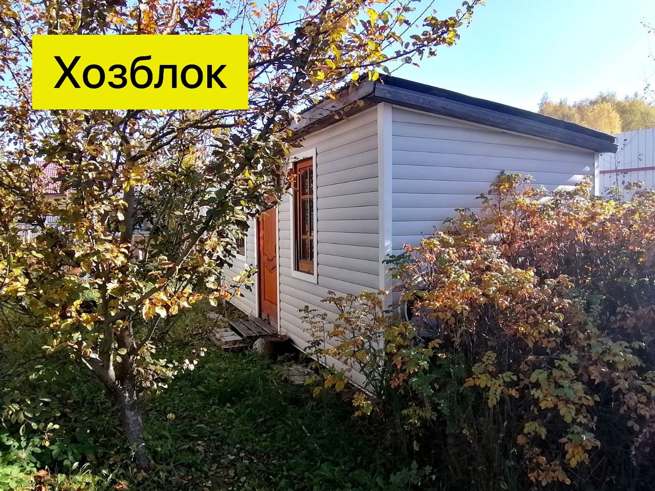 Участок 12 соток, высокий забор из профлиста. На участке хозблок, беседка, парковочное место, калитка, ворота.