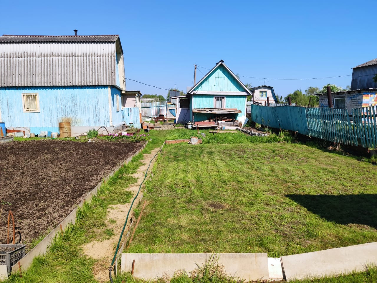 Продается дачный участок с двухэтажным домом и баней. Нормальное состояние.