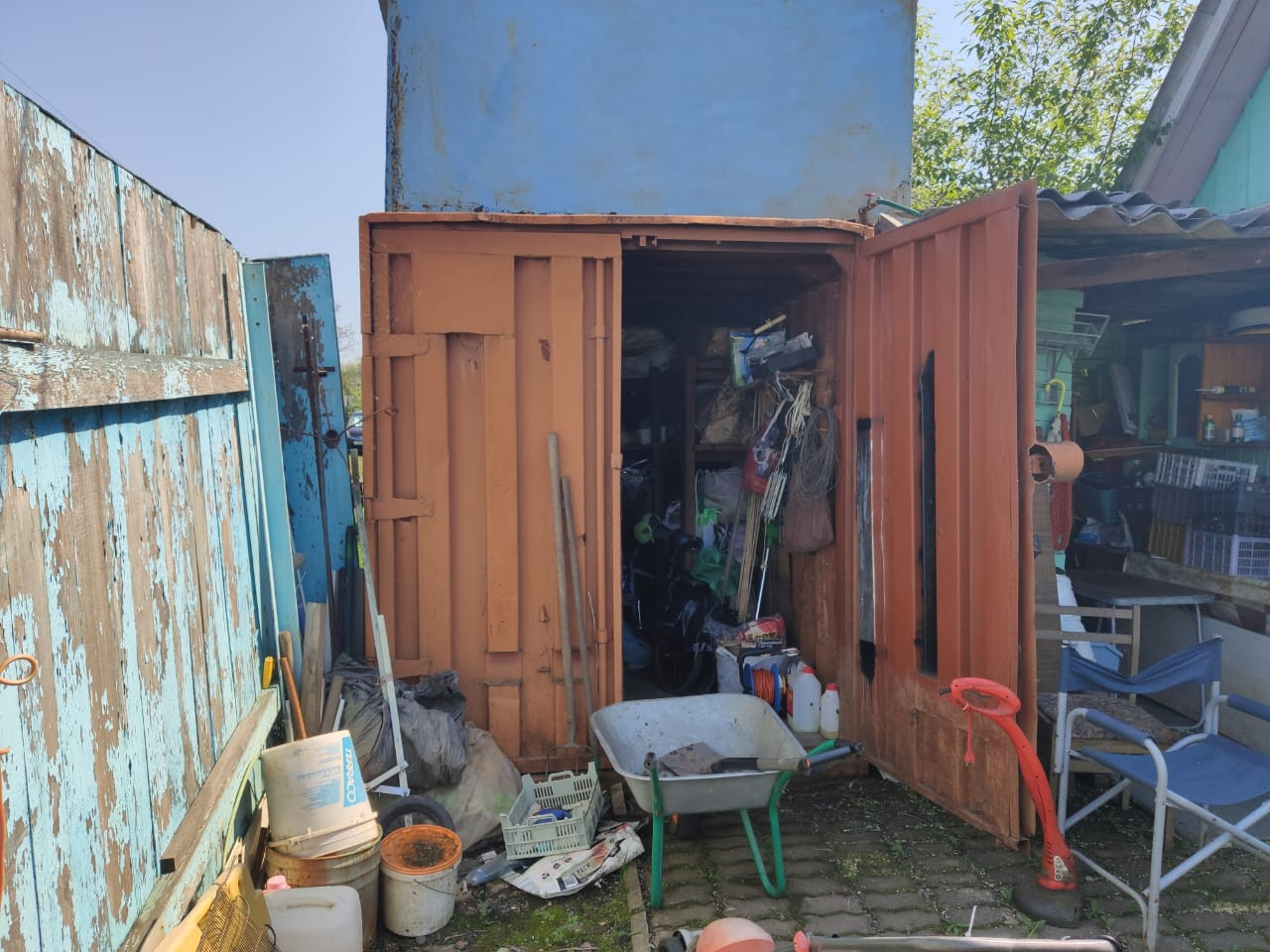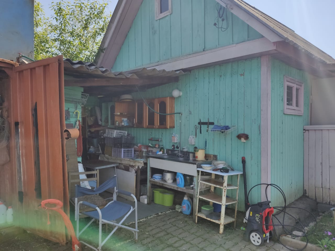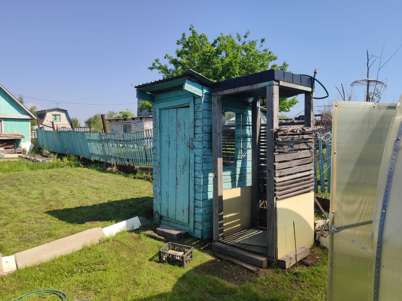 Участок 18 соток (по документам 10,2). Контейнер на 5 тонн с полками и местами под садовый инвентарь. Емкость для воды 5 куб.м., проведена в баню и в летние раковины. Скважина, вода (не питьевая) всегда присутствует. Территория дома огорожена, парковка на 3 – 4 машины, придомовая территория уложена брусчаткой.На территории есть площадка под сезонный бассейн. Летний душ с емкостью на 200 л. На участке деревья, кустарники (смородина, жимолость, малина, шиповник и другие), теплица 3x6. Территория большая, тыльная сторона закрыта деревьями от шума проезжей части и от любопытных глаз и от сглаза.
