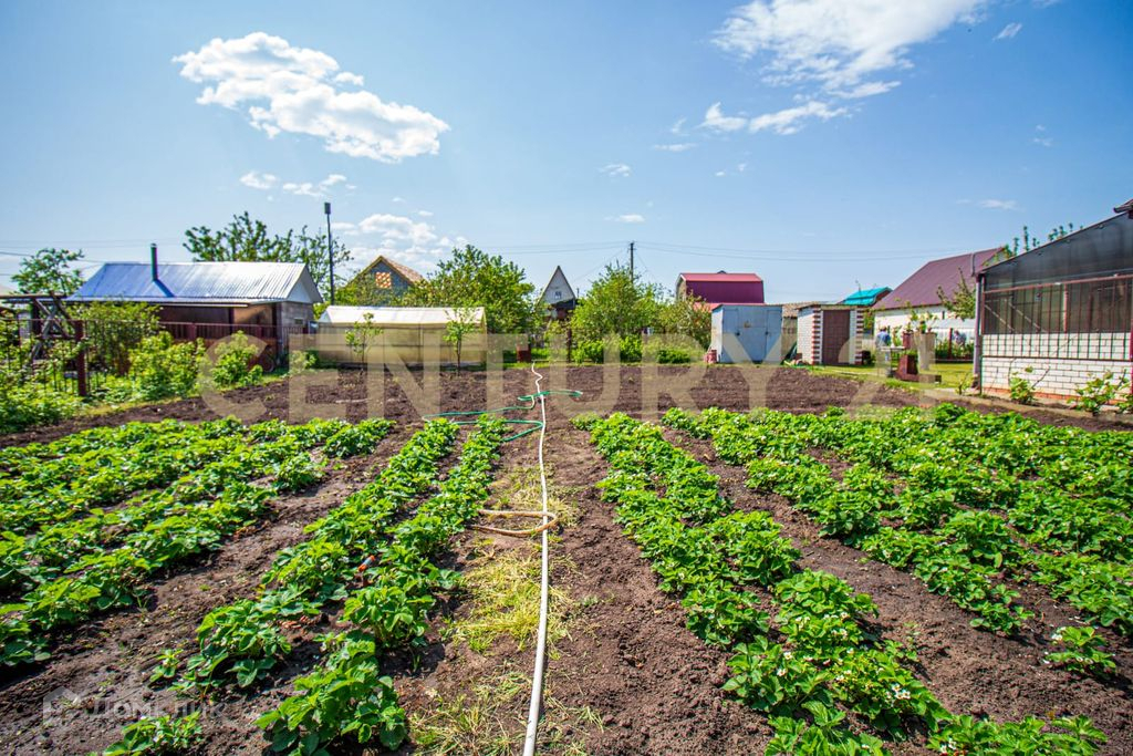 На участке растут фруктовые деревья: груша, яблоня, вишня, слива, также растут смородина, малина, клубника и виноград и другие овощные культуры.
