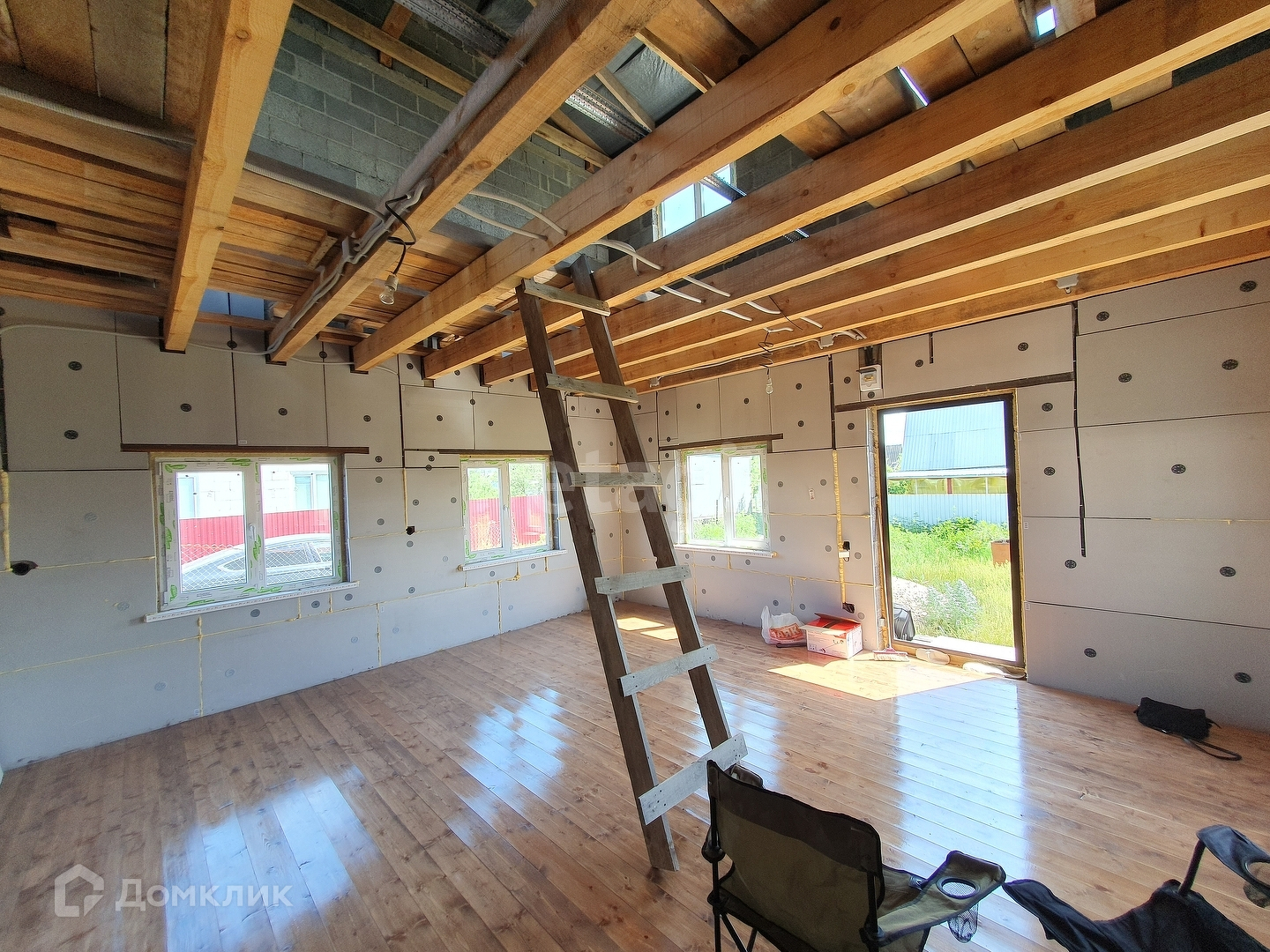 Первый этаж утеплён, сделанны полы, заведена проводка!