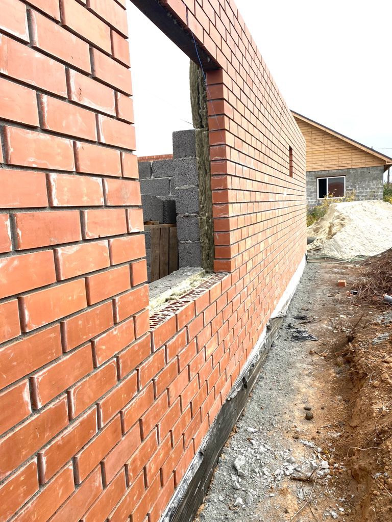 Материал стен - керамзитоблок, утеплитель, облицовочный кирпич