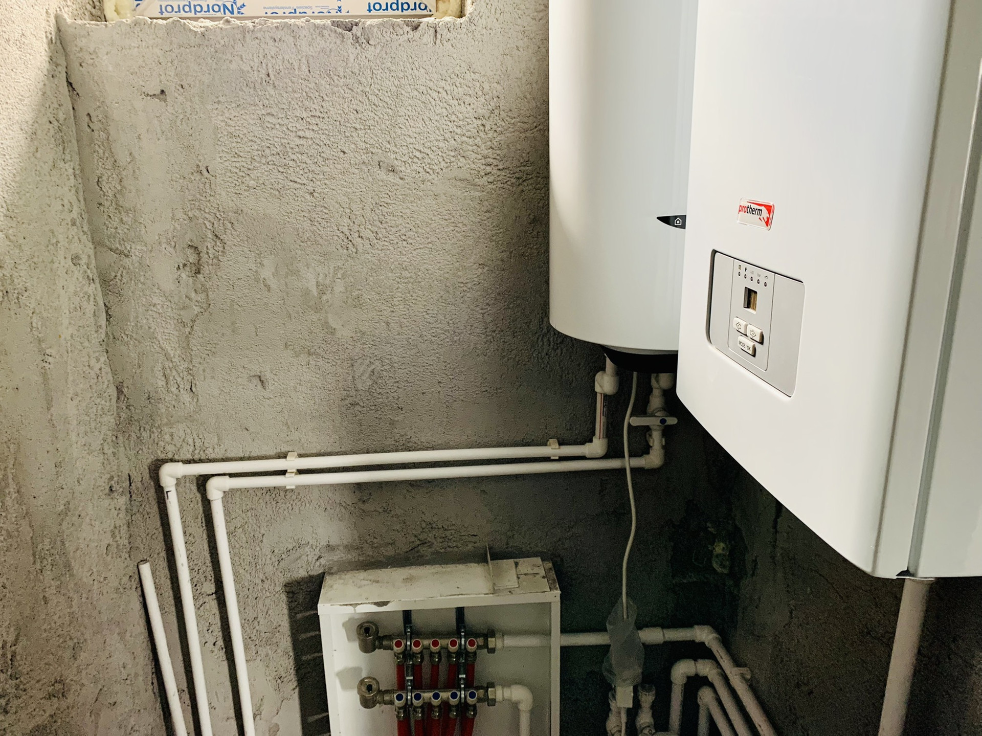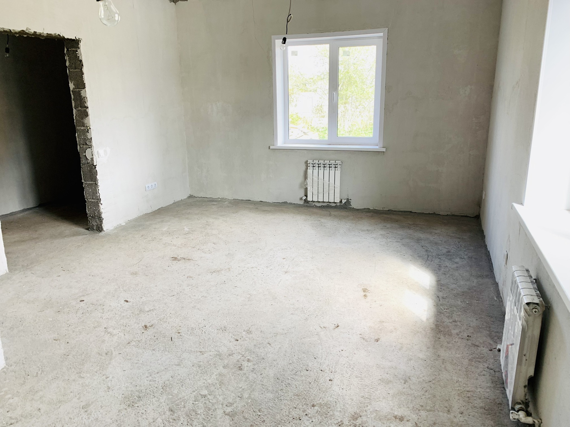 Дом с предчистовой отделкой: стены выровнены и отштукатурены (под обои), стяжка пола, проведена электропроводка, теплые полы,установлен электрический котёл.