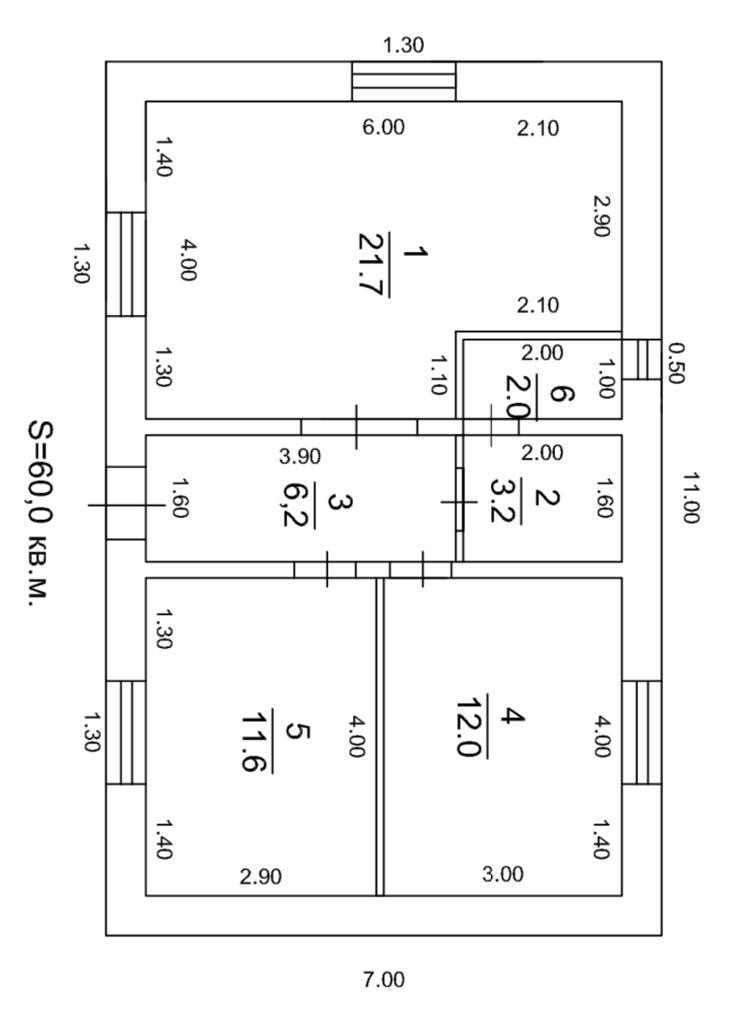 Общая площадь 60 м2