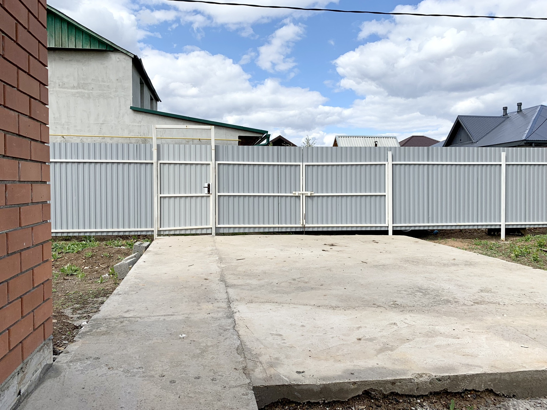 Забор,бетонная площадка под машину.