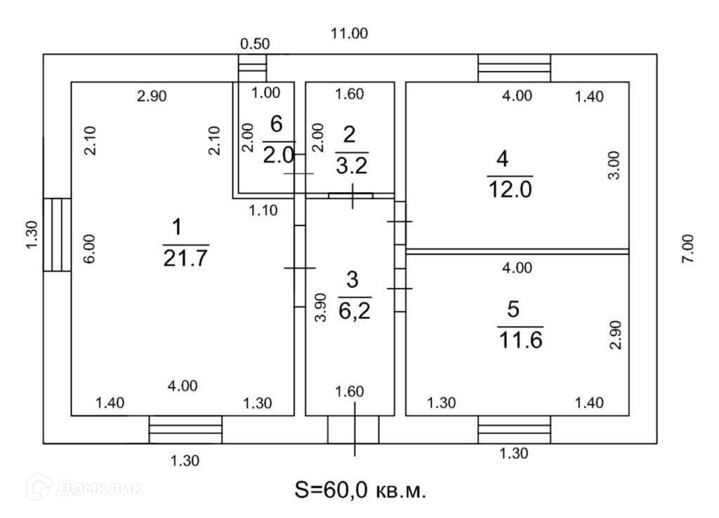 Общая площадь 62.8 м2