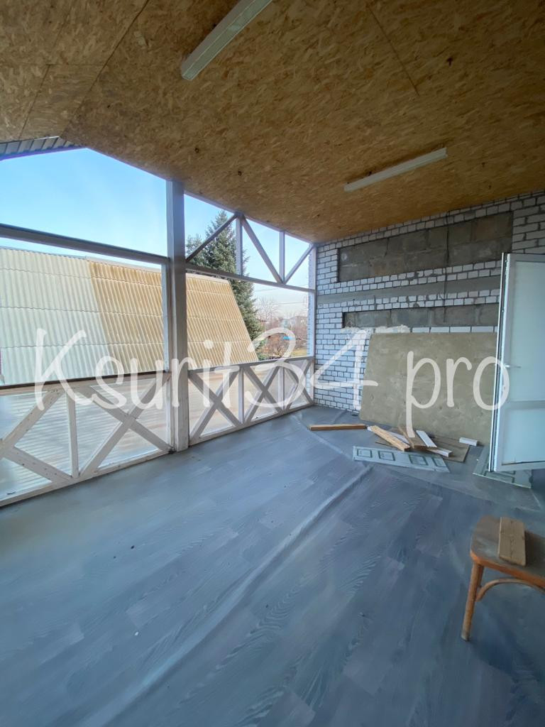 Есть огромная веранда. На территории парковка под 3 машины, раздвижные ворота.
