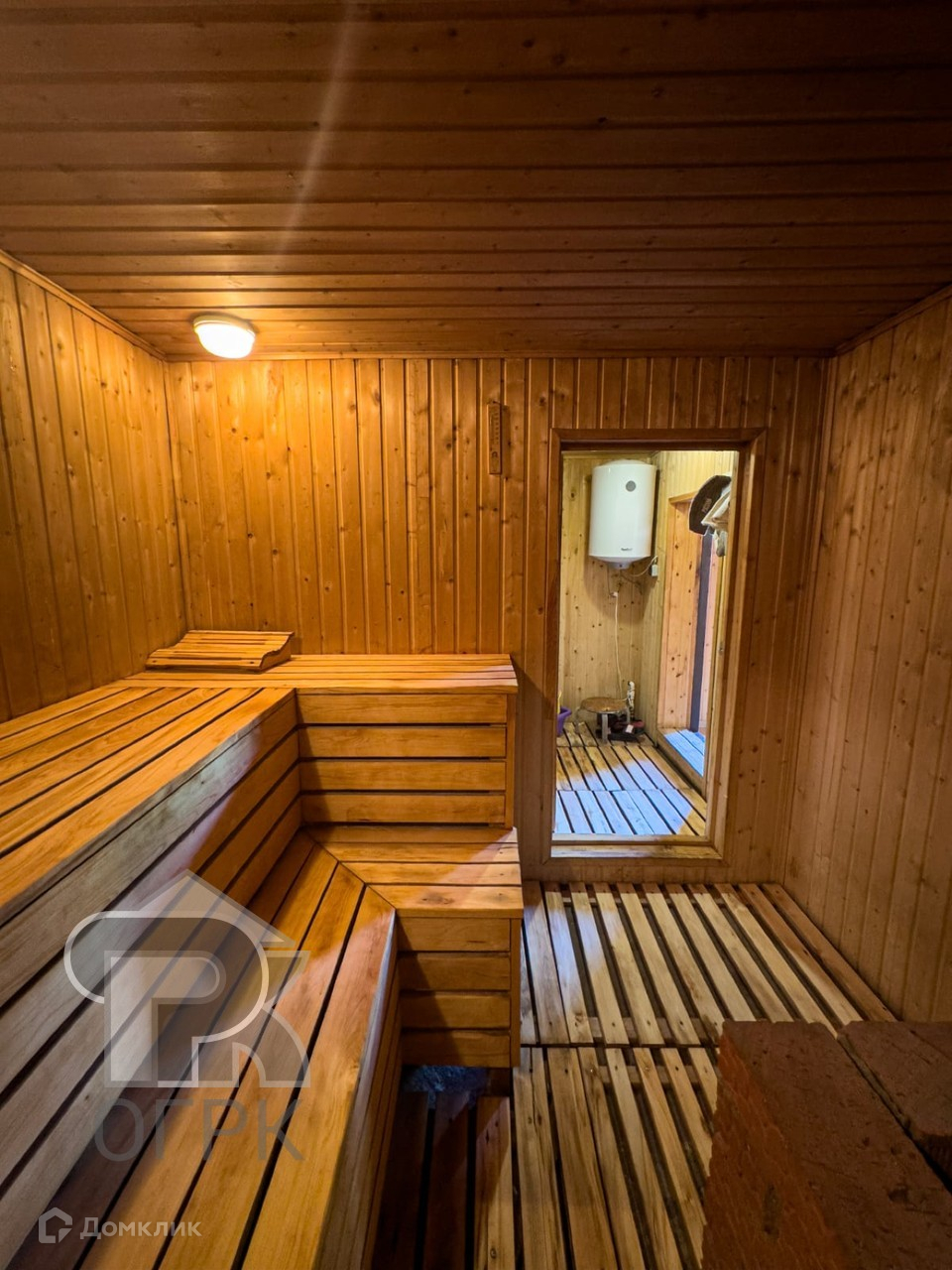 На первом этаже везде теплые полы, водонагреватель, даже есть дровяная печка для создания теплых зимних вечеров.