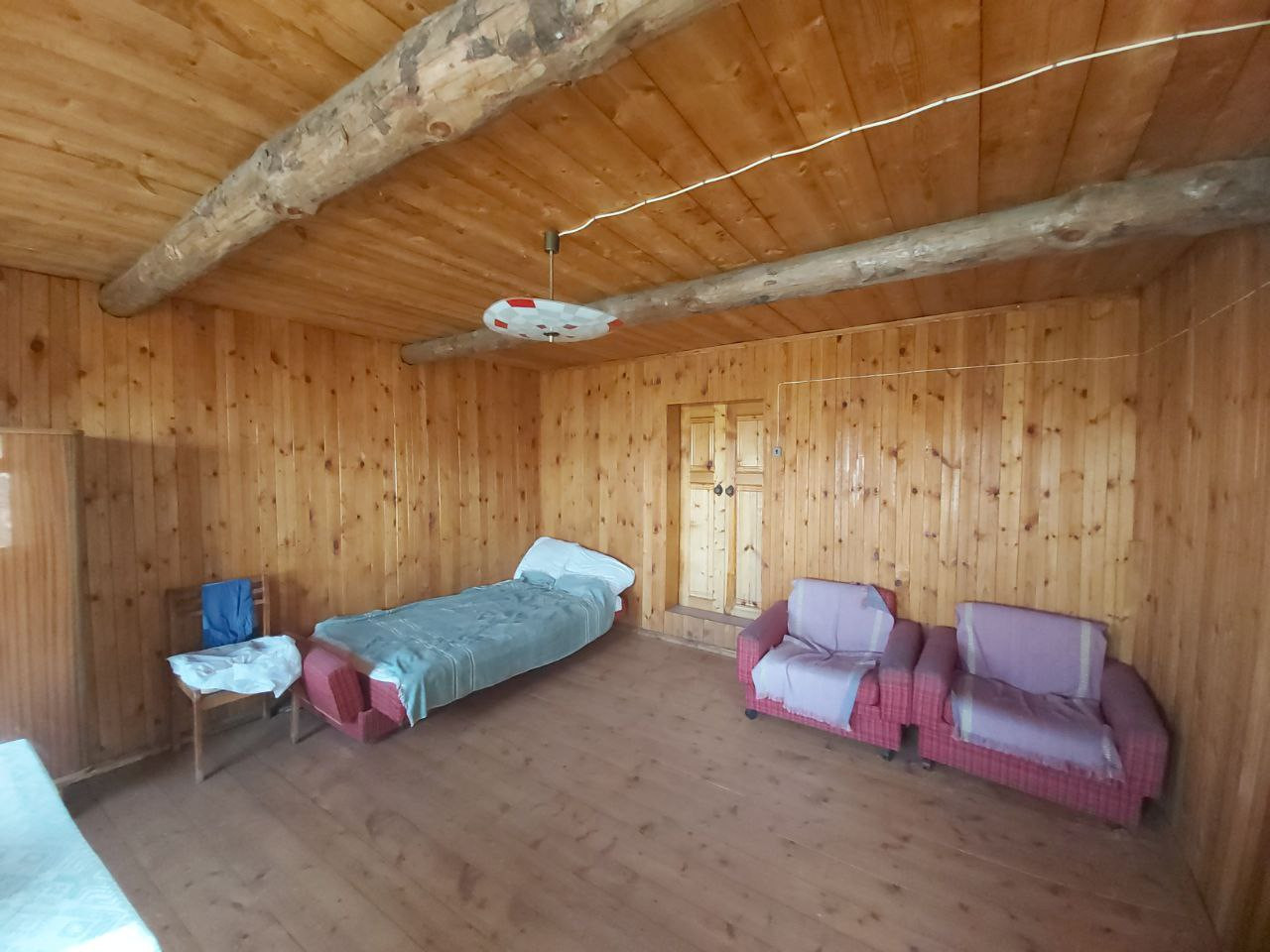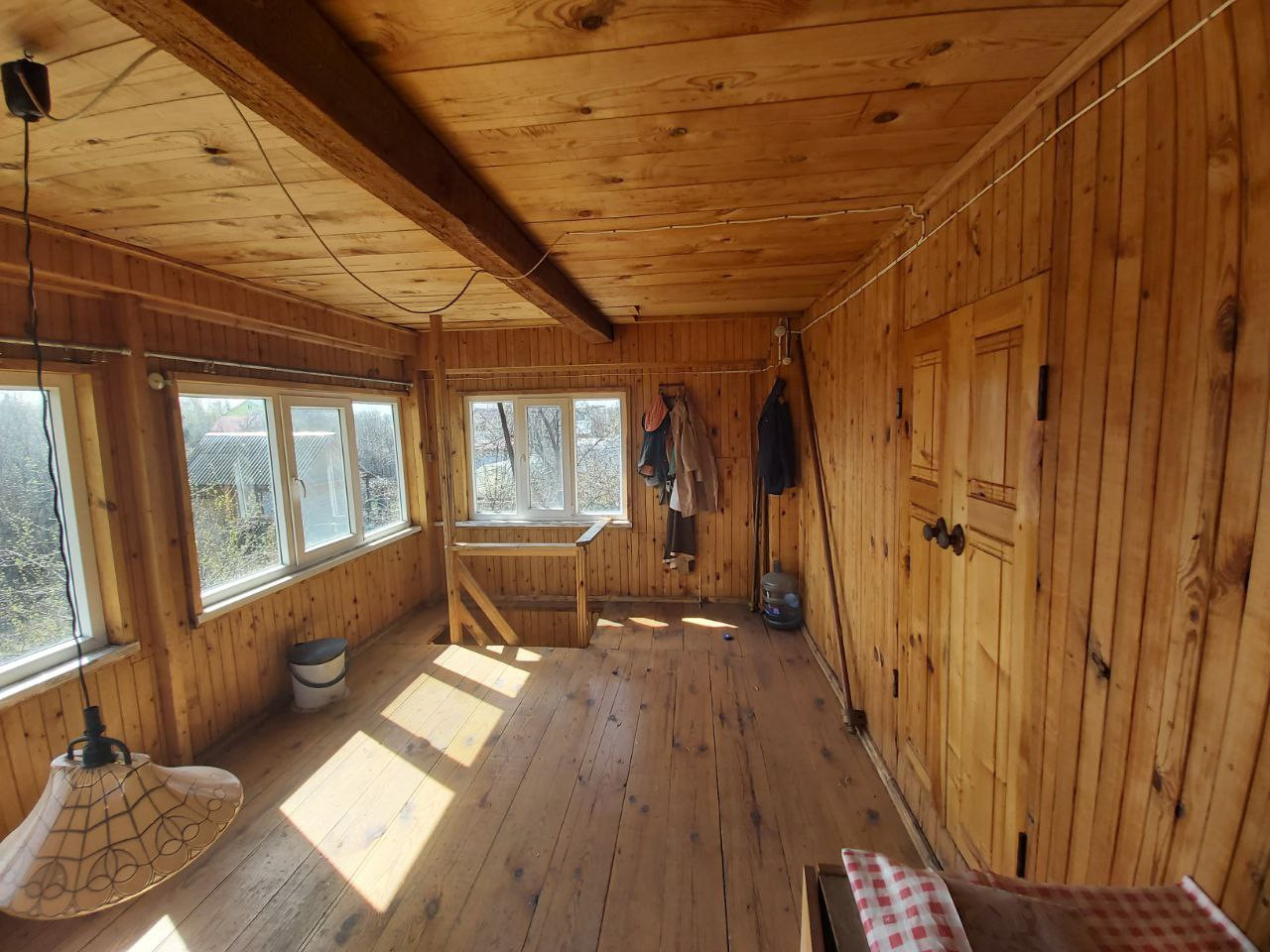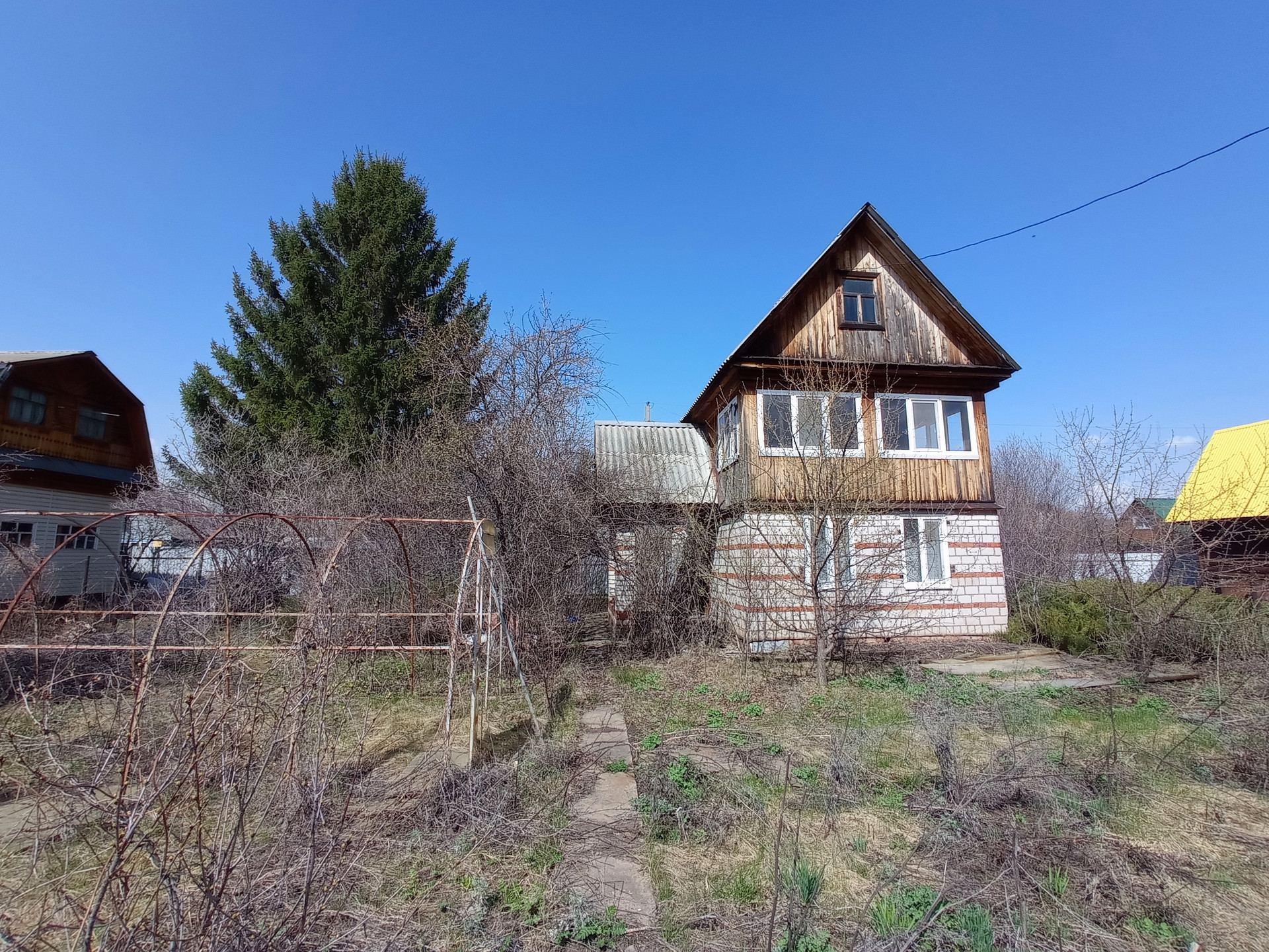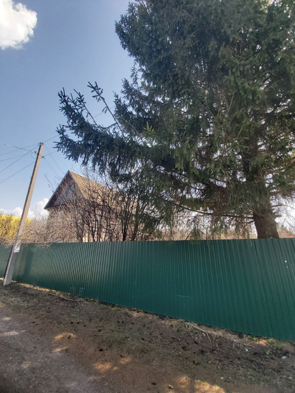 Участок ровный прямоугольной формы. На участке есть баня и мангальная зона. Есть плодово-ягодные деревья, вишня, яблони, огромная красивая ель. Электричество проведено и в дом и в баню. Подъезд к участку отсыпан щебенкой.