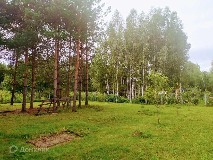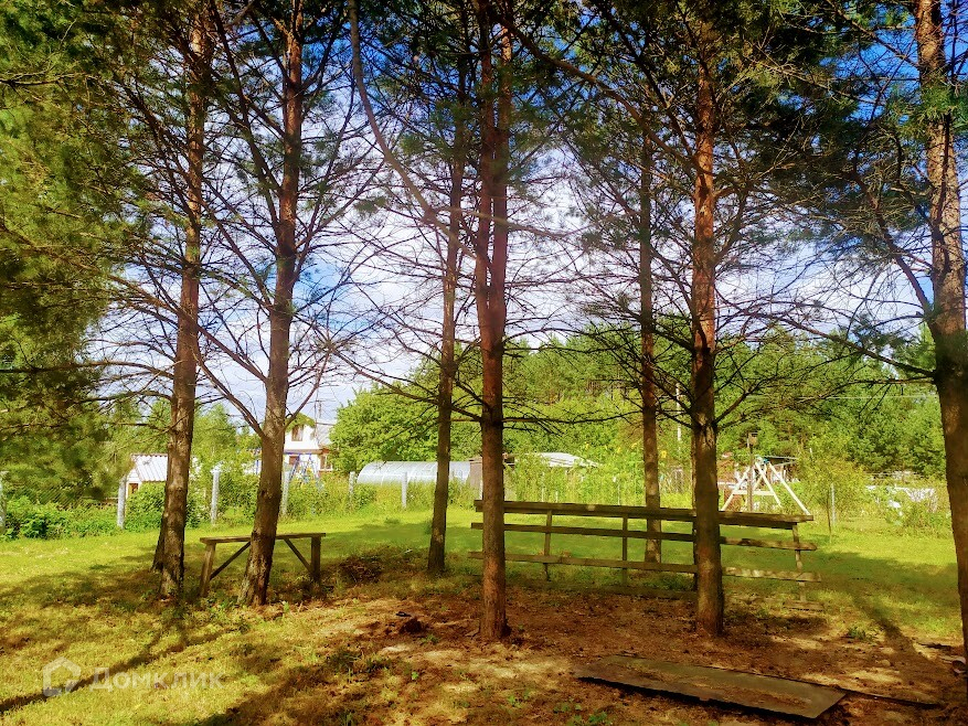Участок площадью 8 соток, ровный, правильной формы. Огорожен забором.  На участке сосны, яблони.