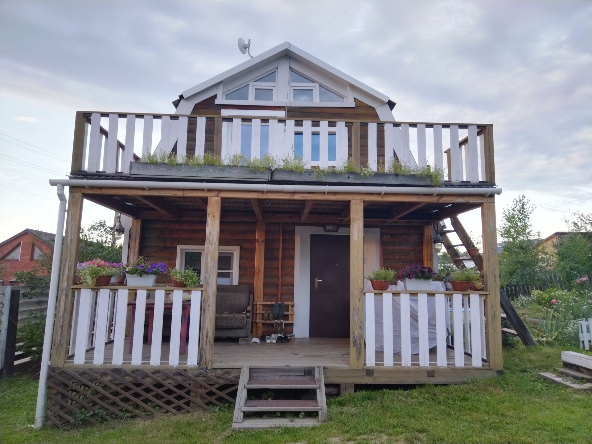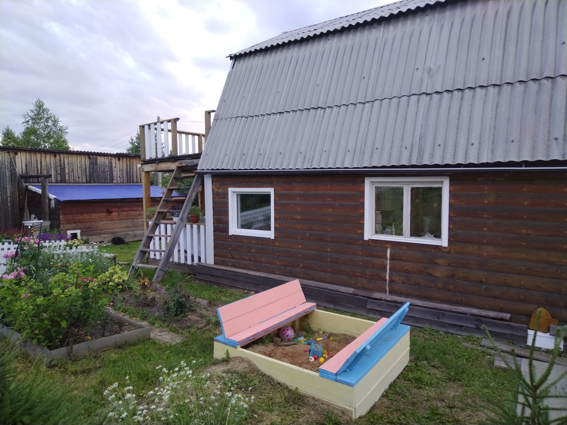 Жилой дом 2005 года постройки площадью 68 м² из бруса, утеплен минеральными плитами, обшит листвиничным блокхаусом.