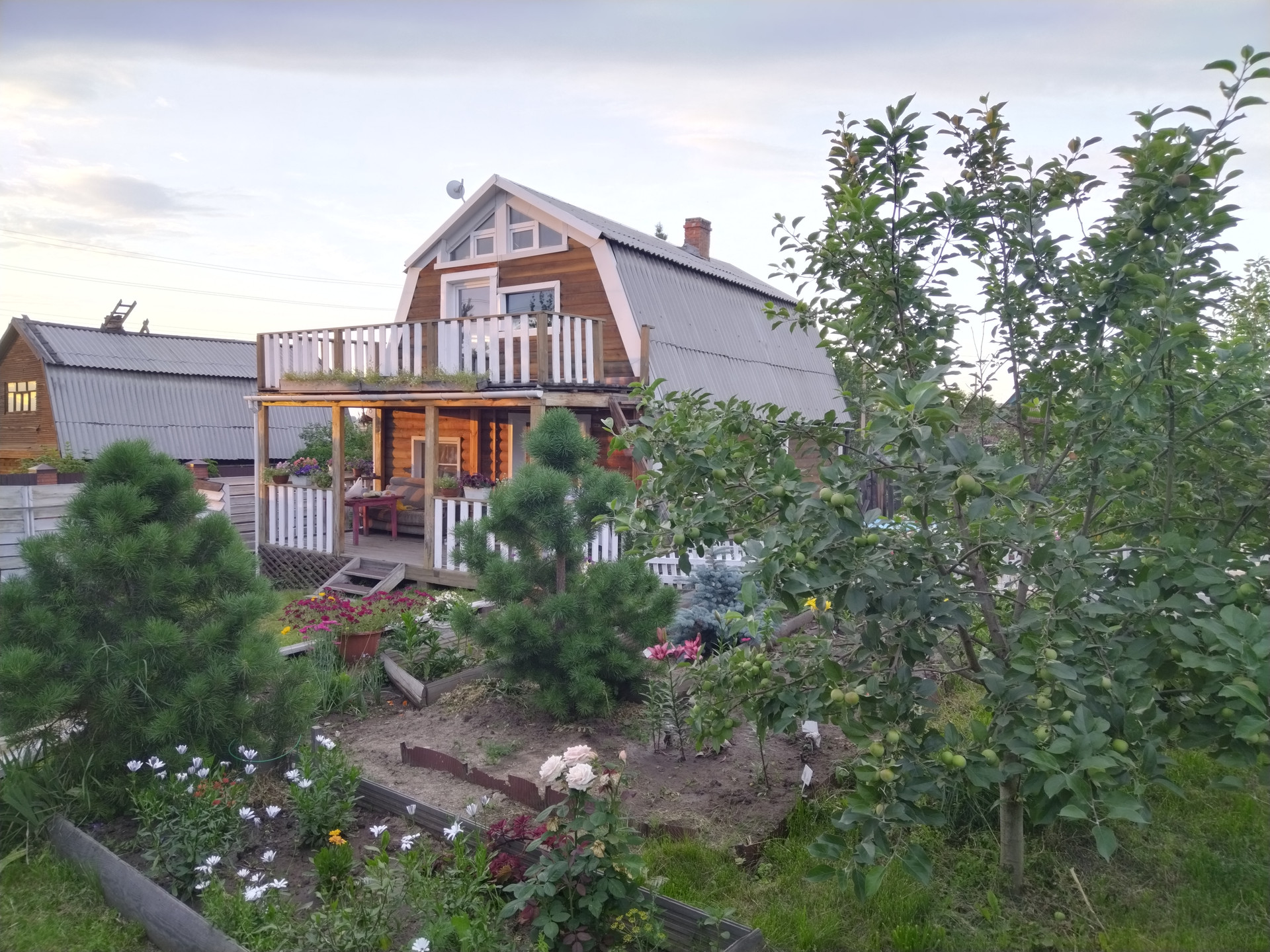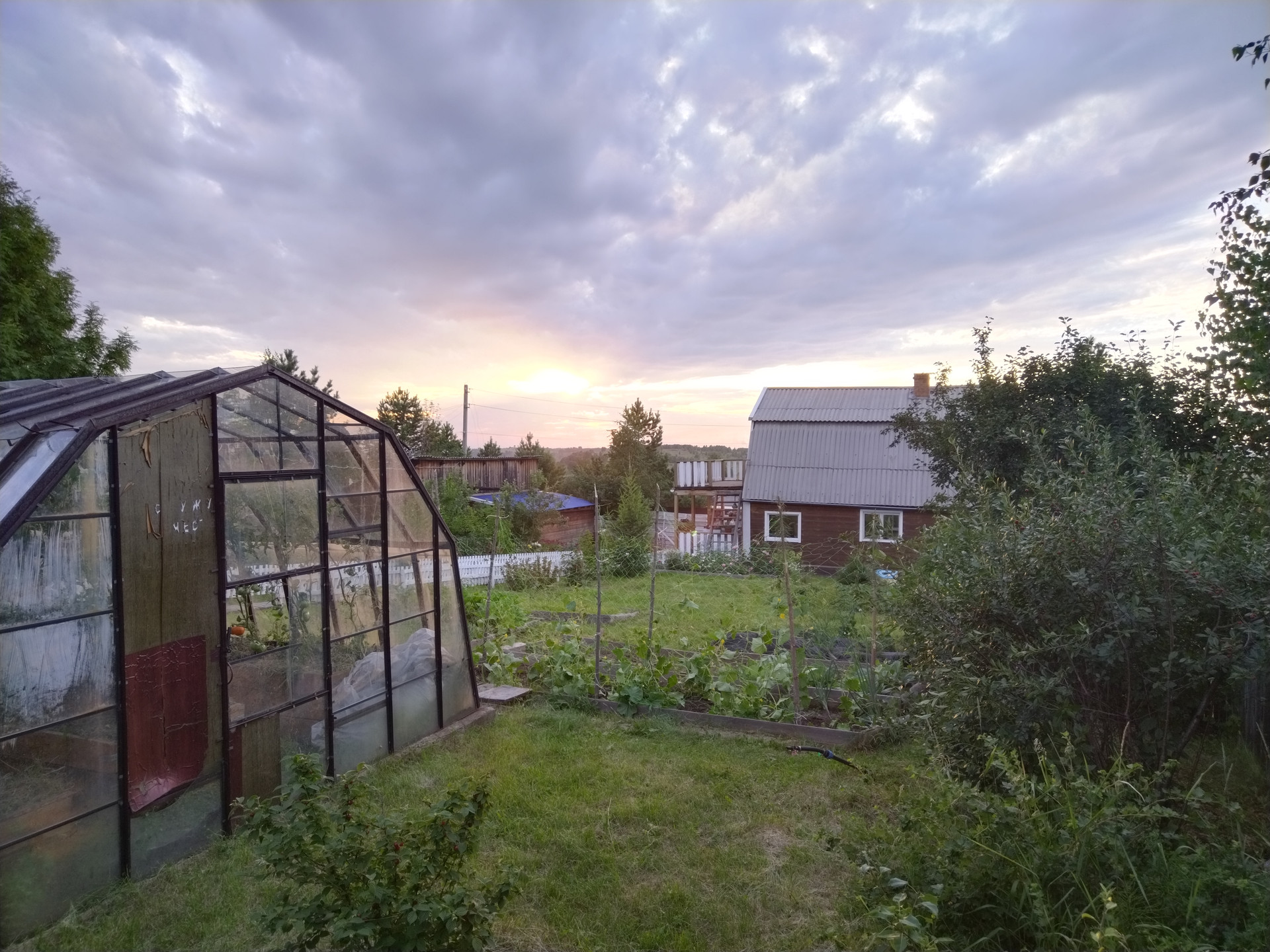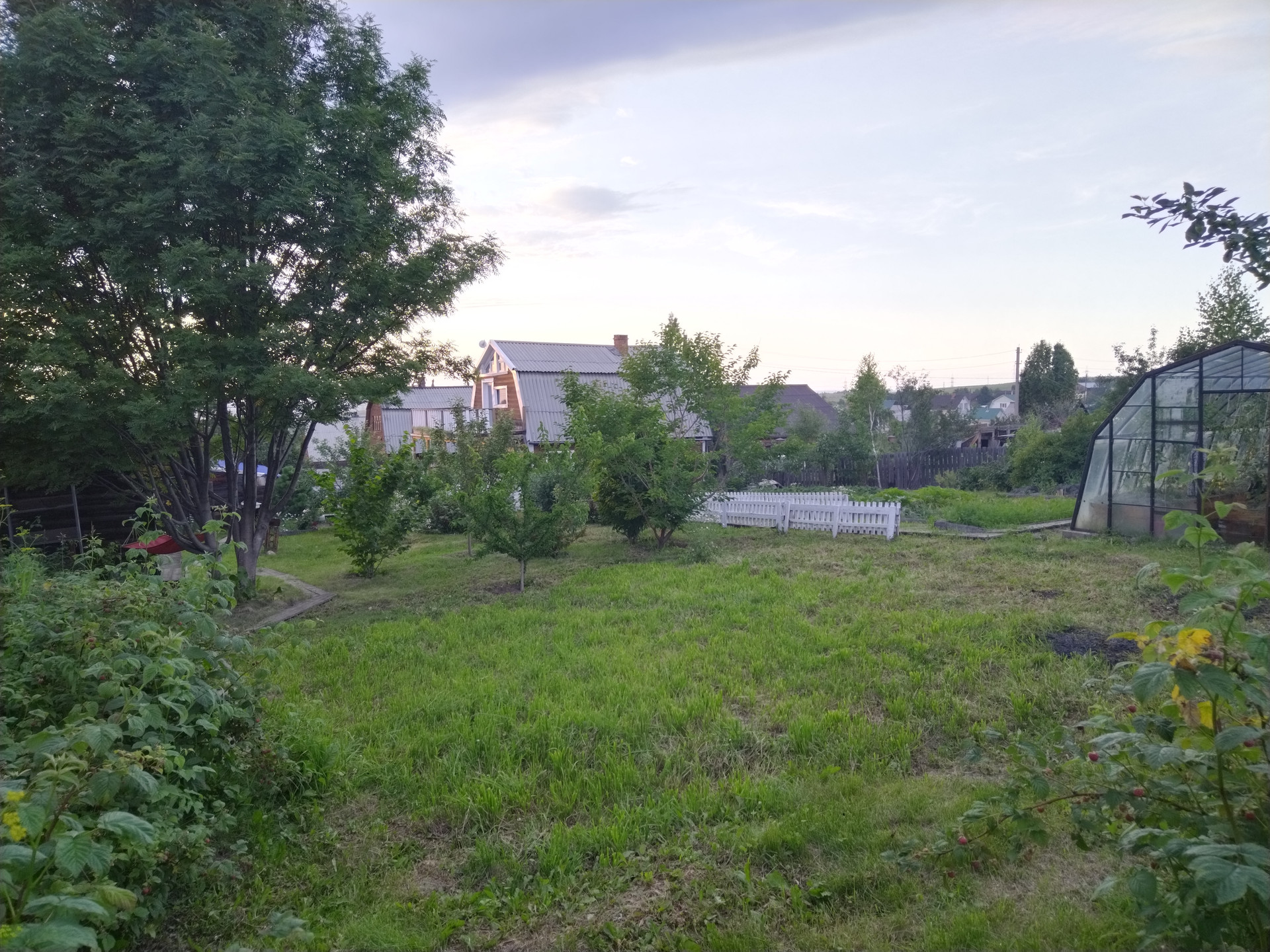 Участок полностью разработан — из насаждений: жимолость, клубника, смородина, крыжовник, малина, черноплодка, фундук, рябина, вишня, яблони, сливы, абрикос, груша, розарий.