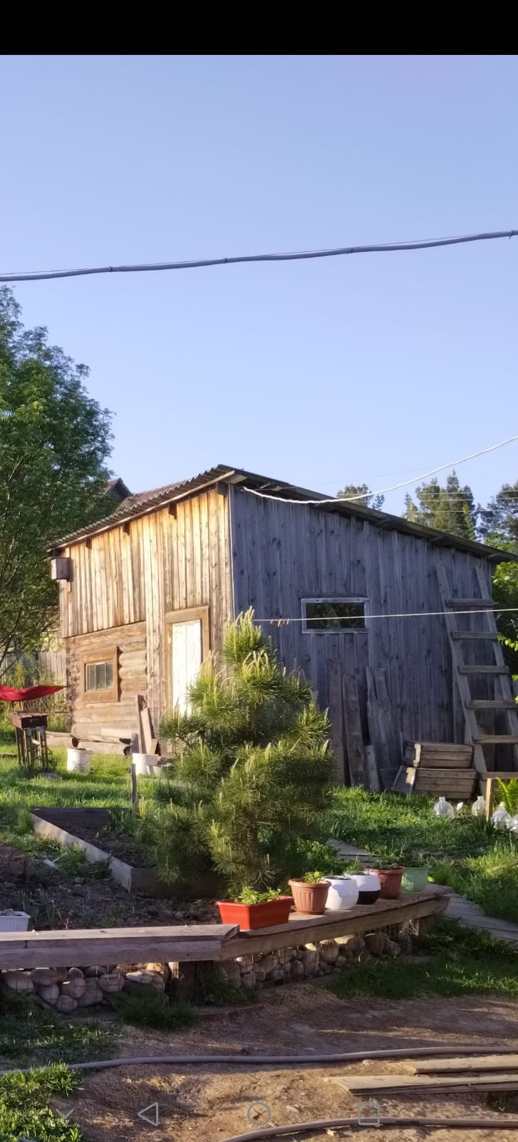 Баня из кругляка 3х3 с предбанником 3х1.5, гараж 4×6 из бруса, второй гараж 2.5х7 каркасный утепленый.