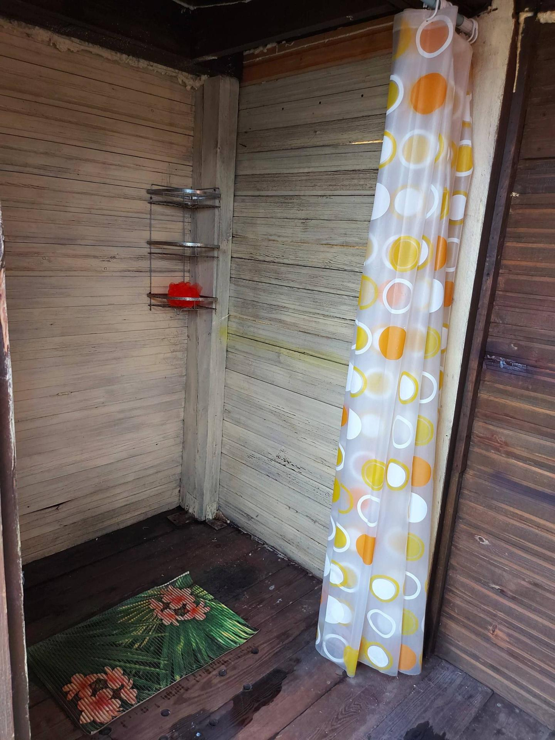 Есть большая площадка для бассейна, добротный летний душ с подогревом и надворные постройки.