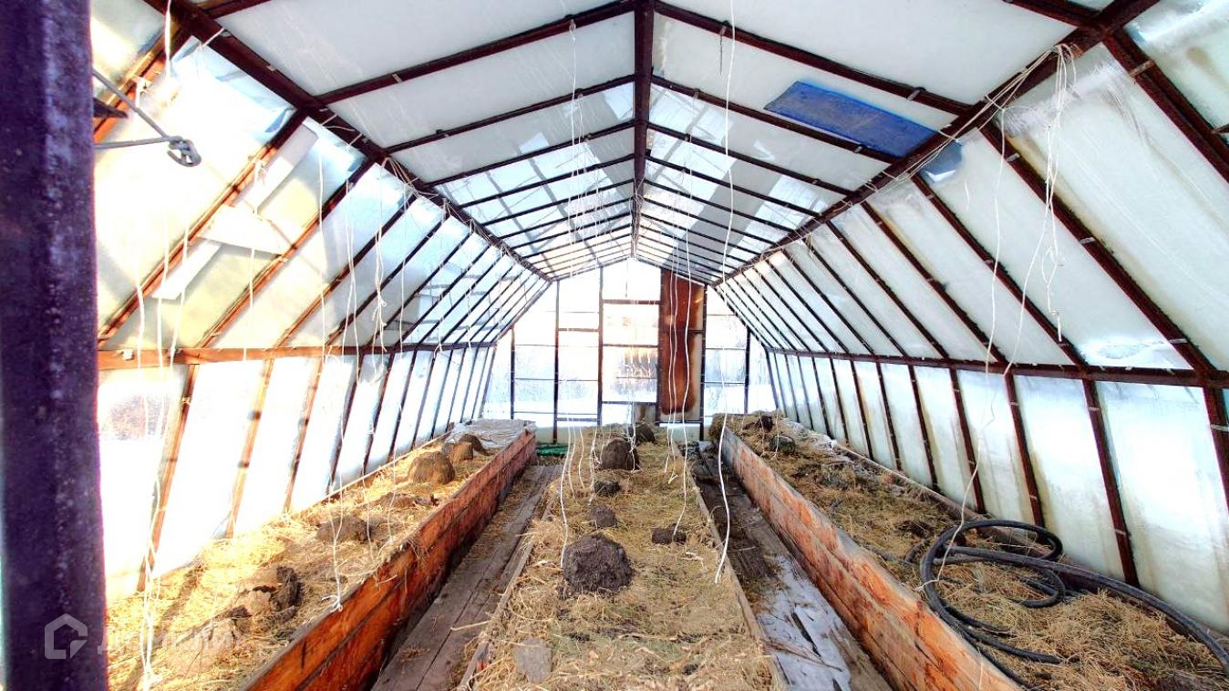 7. Большая теплица под стеклом с надёжным металлическим каркасом. Садовые и декоративные насаждения.