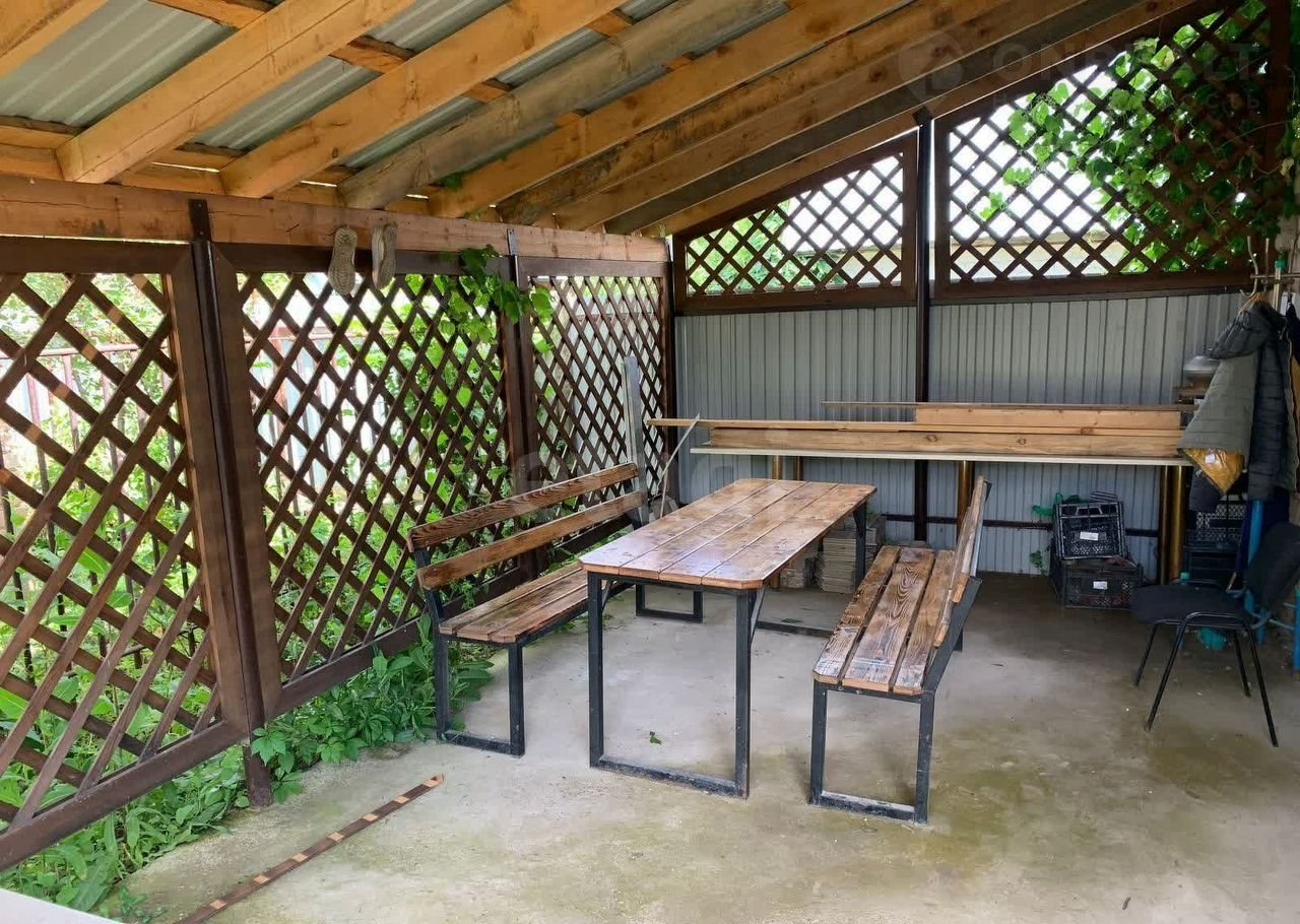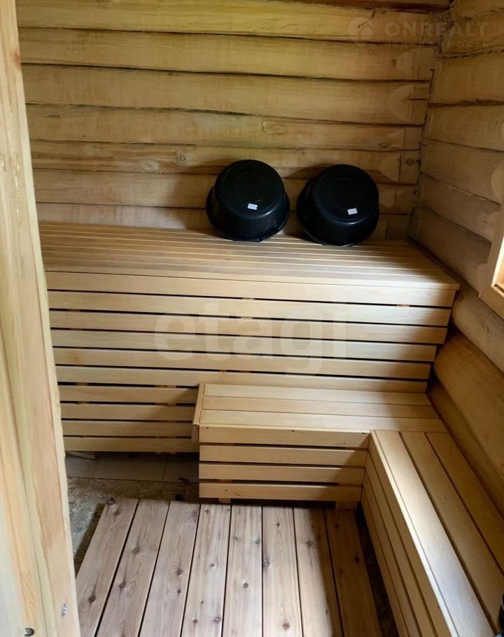 Терраса расширяет полезное пространство и создает комфортную зону для отдыха на свежем воздухе. Отдельная баня из круглого бруса дополняет инфраструктуру участка: предбанник выстроен из шлакоблоков, крыша покрыта профнастилом, внутренняя отделка выполнена деревянной вагонкой. Участок ухожен, что избавляет новых владельцев от необходимости дополнительных вложений в благоустройство.