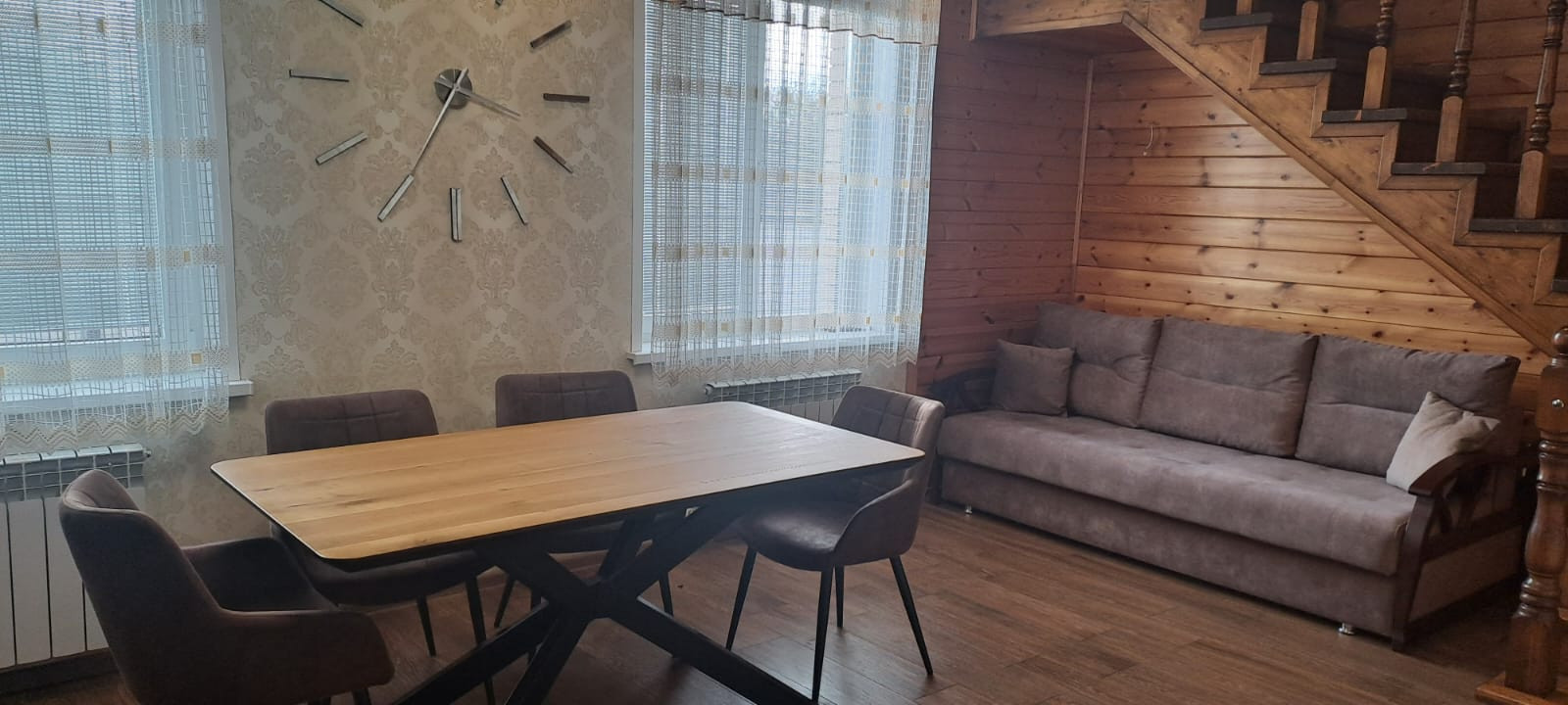 на 1 этаже теплый пол плитка, 2 этаж -полы ламинат, дверь входная металлическая. Окна ПВХ ламинированные. Межкомнатные двери деревянные из массива. Вода скважина.