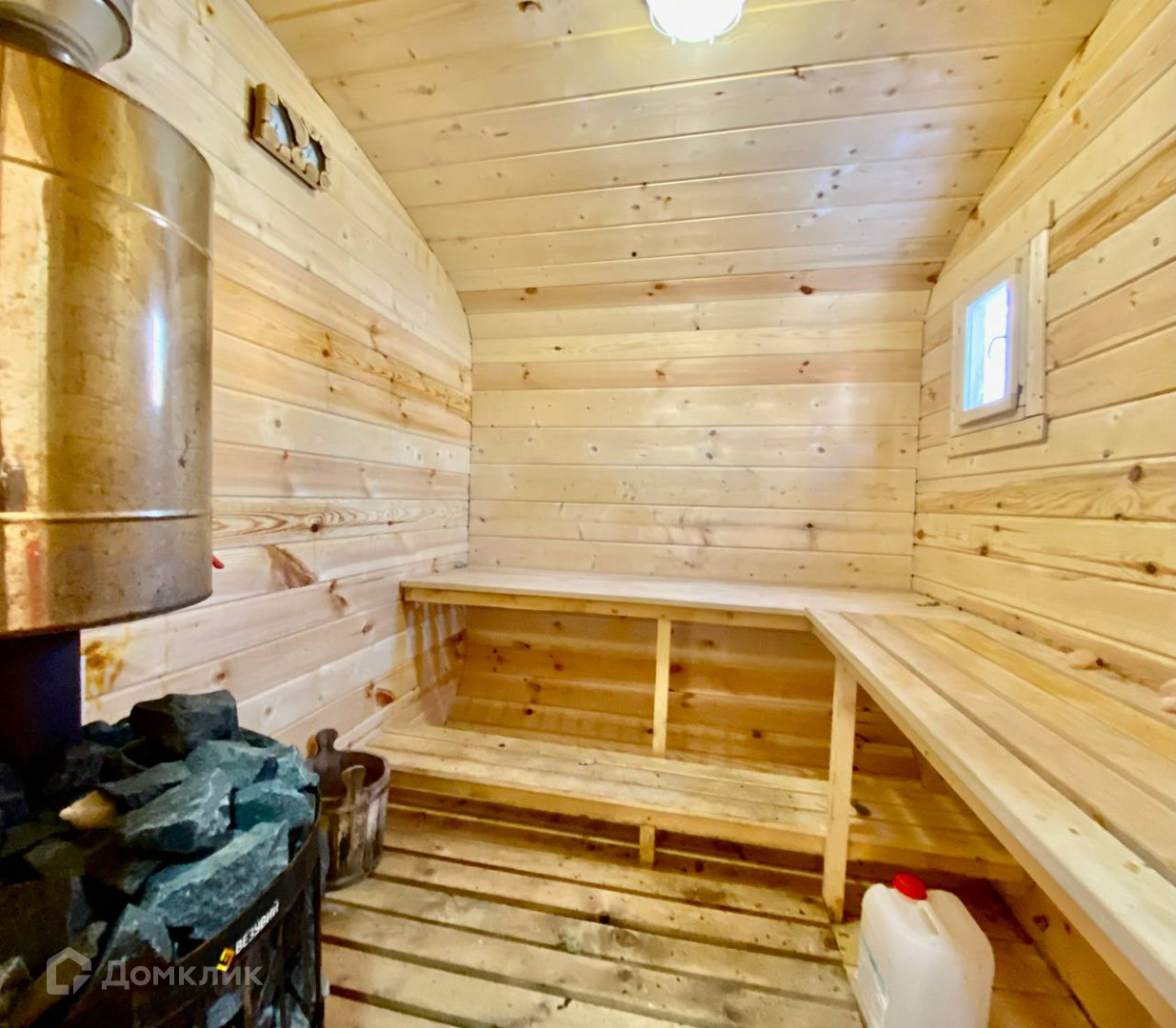 На участка есть баня-бочка, с зоной для отдыха, раздевалкой и парилкой 6*4м.