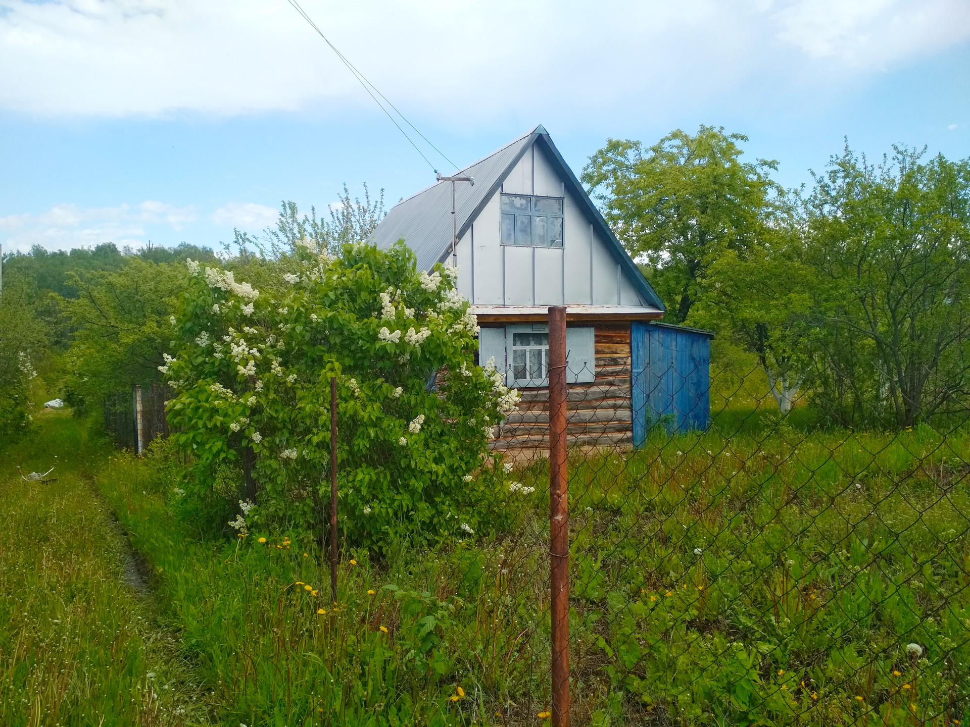 Имеется дом бревенчатый, садовые насаждения,участок огорожен сеткой Рабица. Рядом есть лес и речка Сикияз.