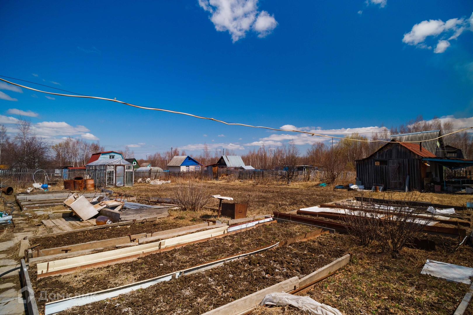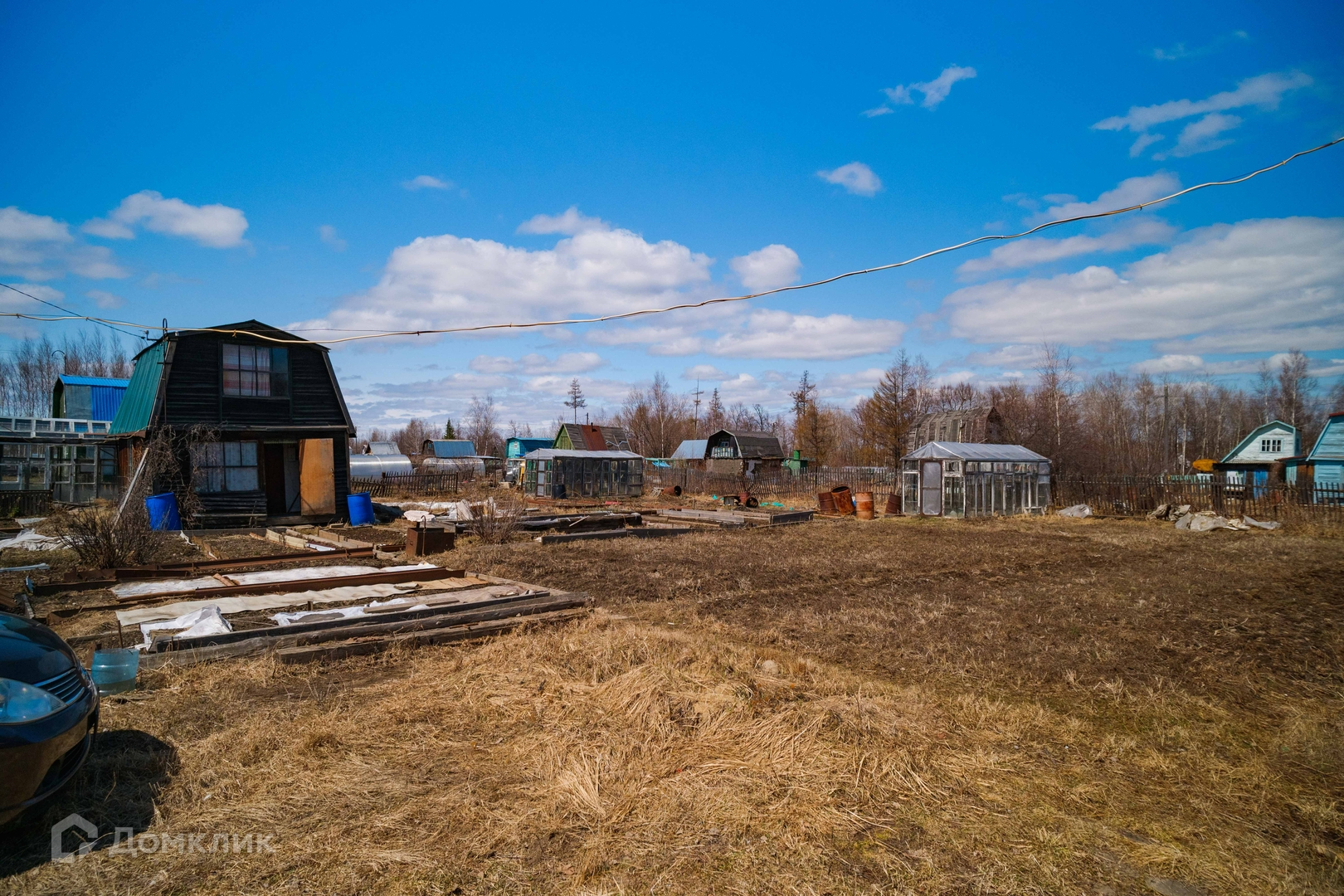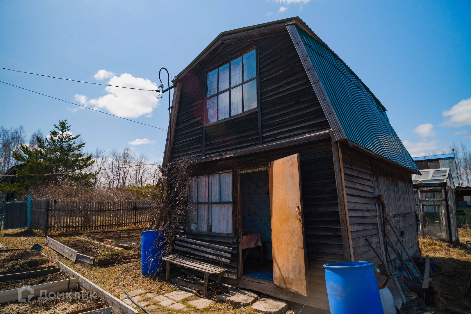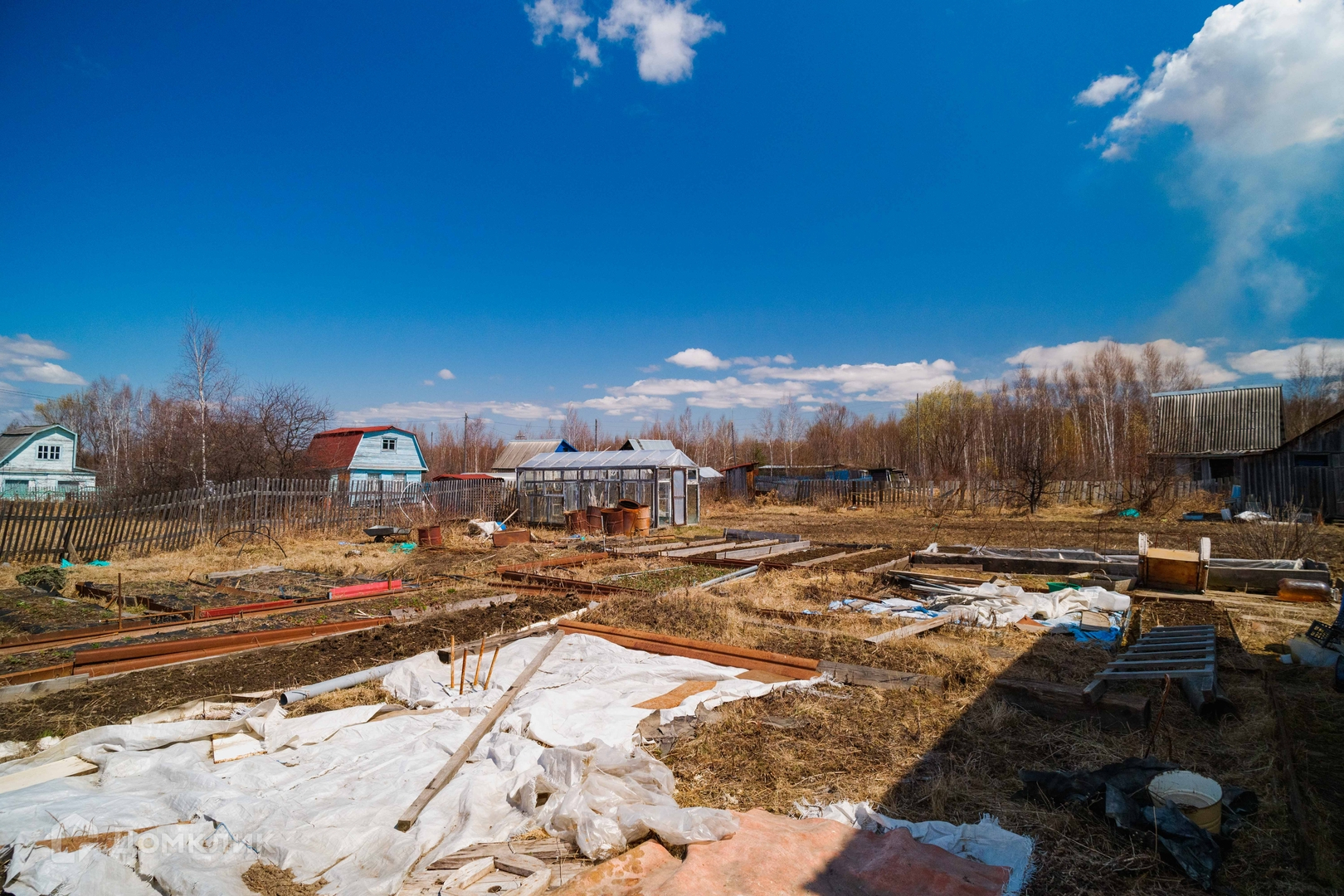 Садоводство оборудовано центральным летним водопроводом со скважины, на участке два выхода воды, есть электричество. На участке расположен двухэтажный дом из бруса, баня, три стеклянные теплицы, плёночный парник, отдельная емкость для воды, бочки, есть двое ворот для въезда машин, контейнер с наличием инвентаря, шлангов, строительного материала и различного инструмента.