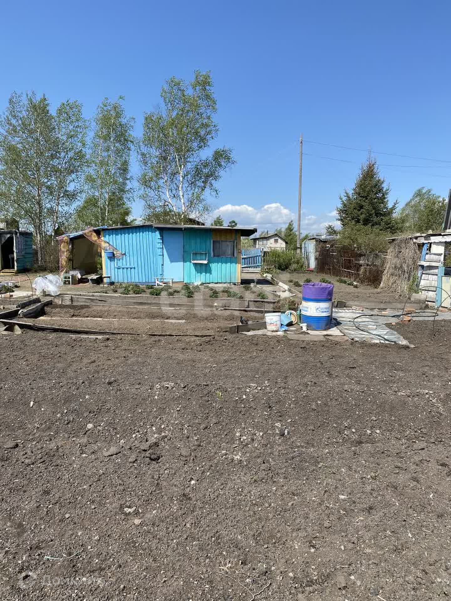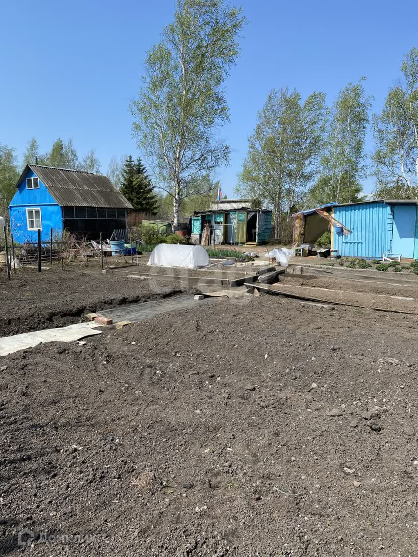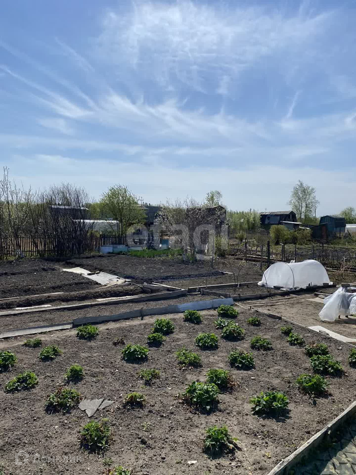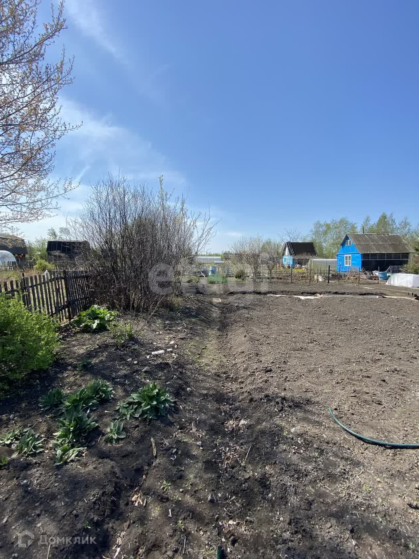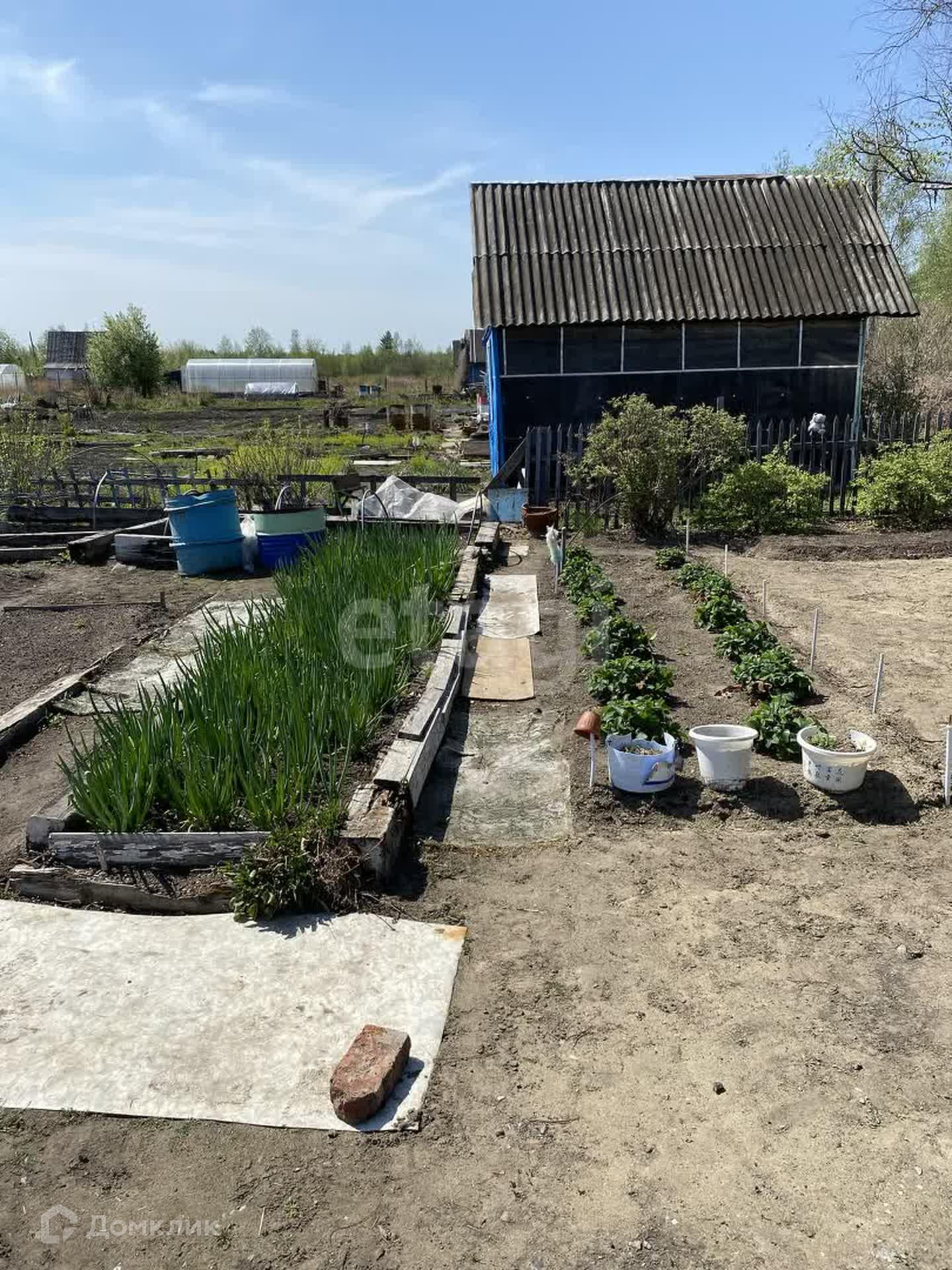 На участке 6 сот. много,много клубники, а так же жимолость, малина, смородина, вишня, слива, ирга, крыжовник, калина, черемуха. Земля плодоносная.