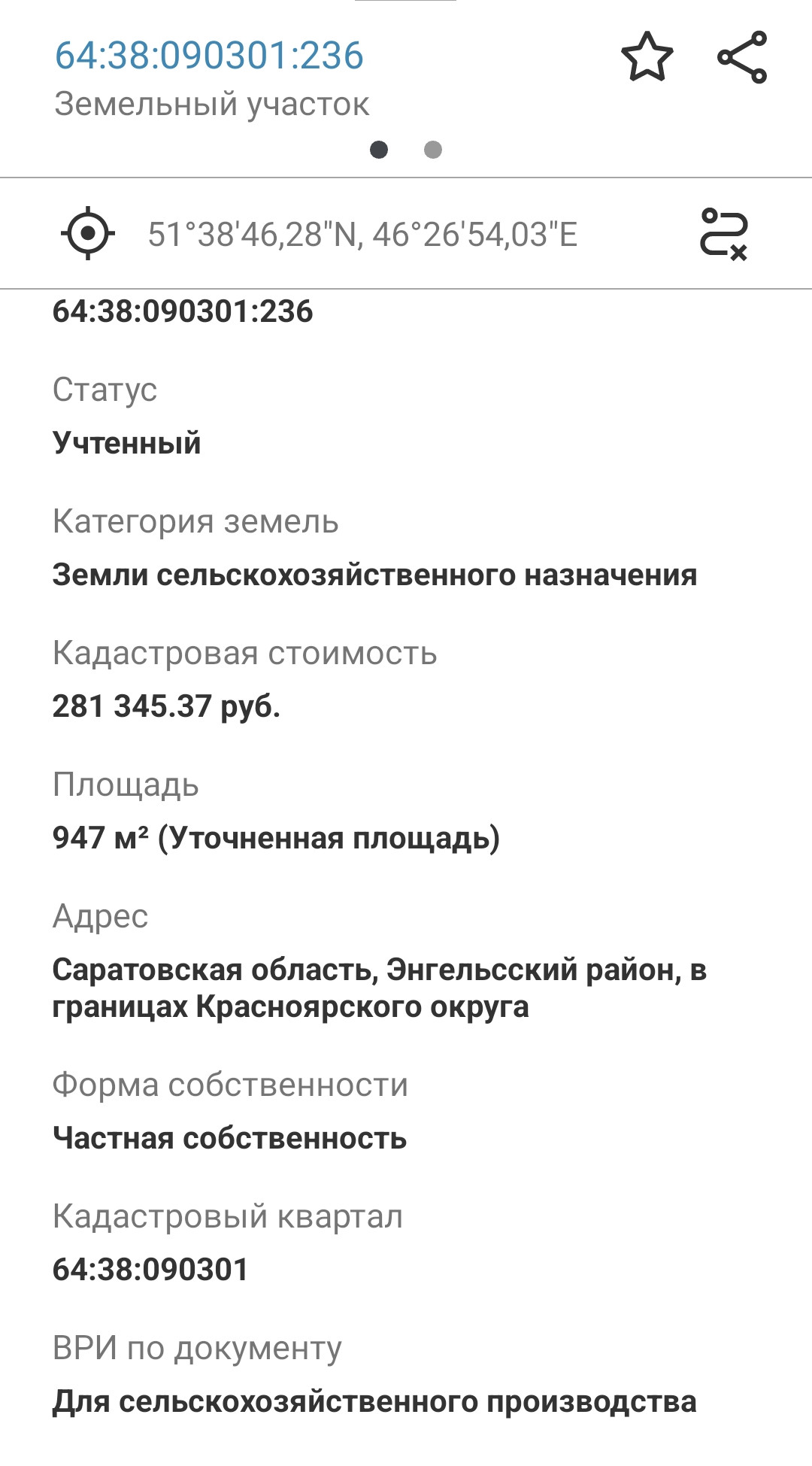 Кадастровый номер 64:38:090301:236