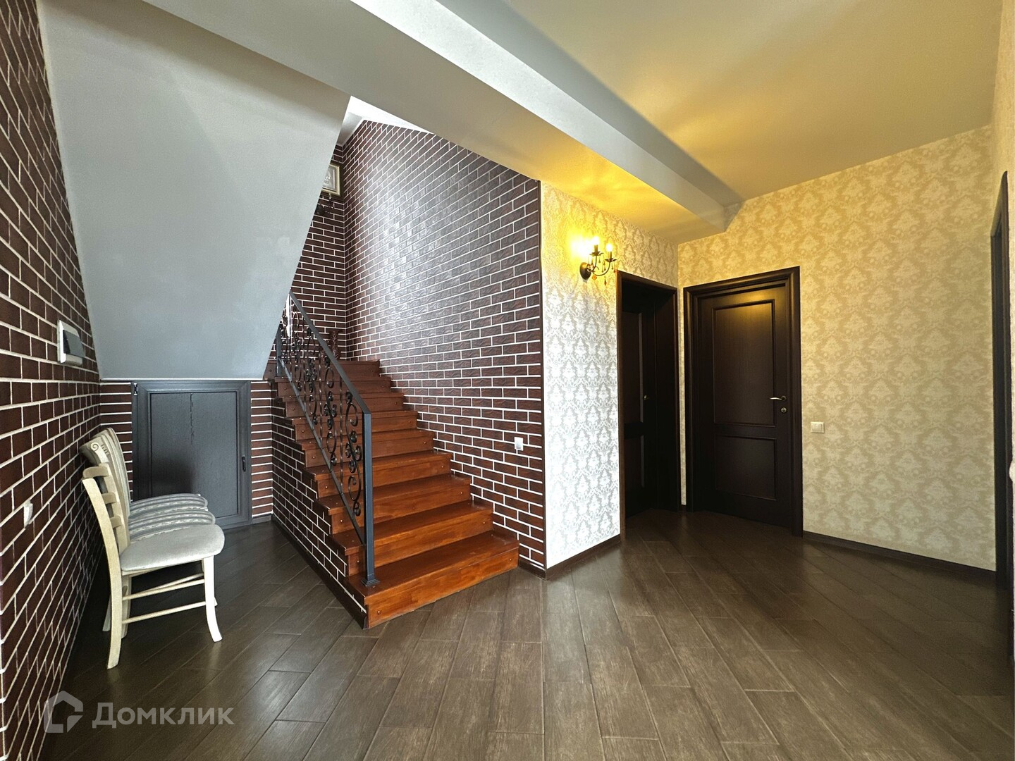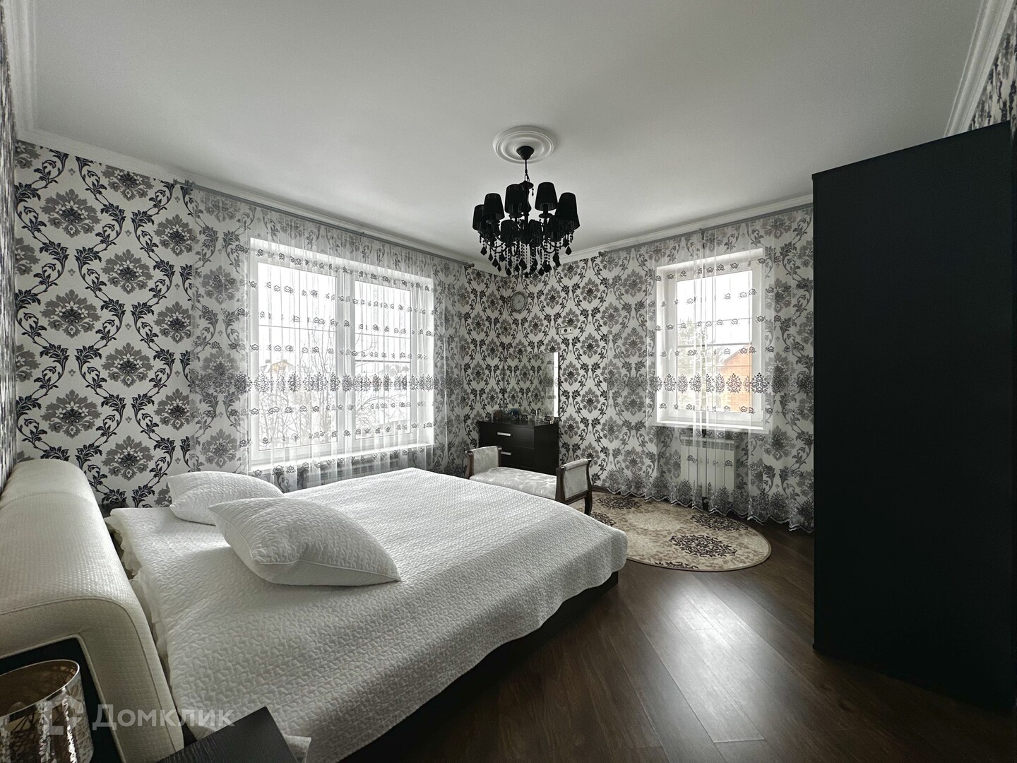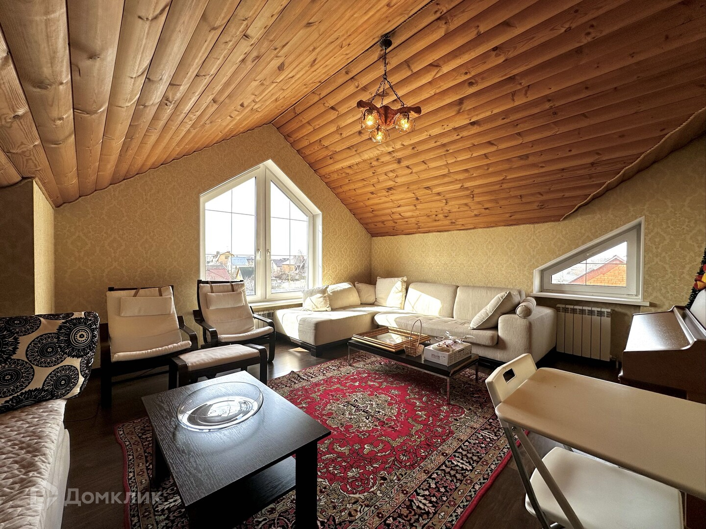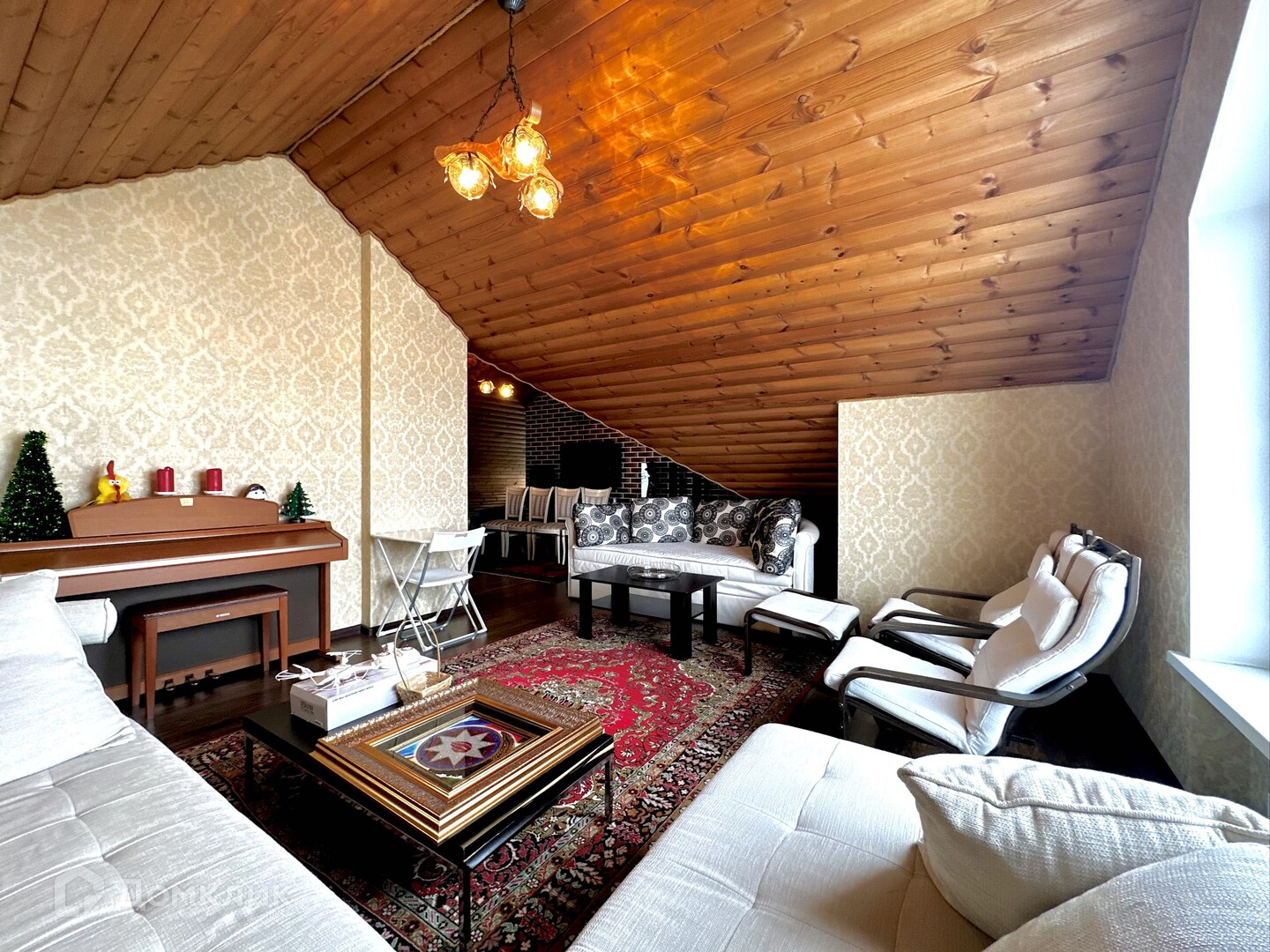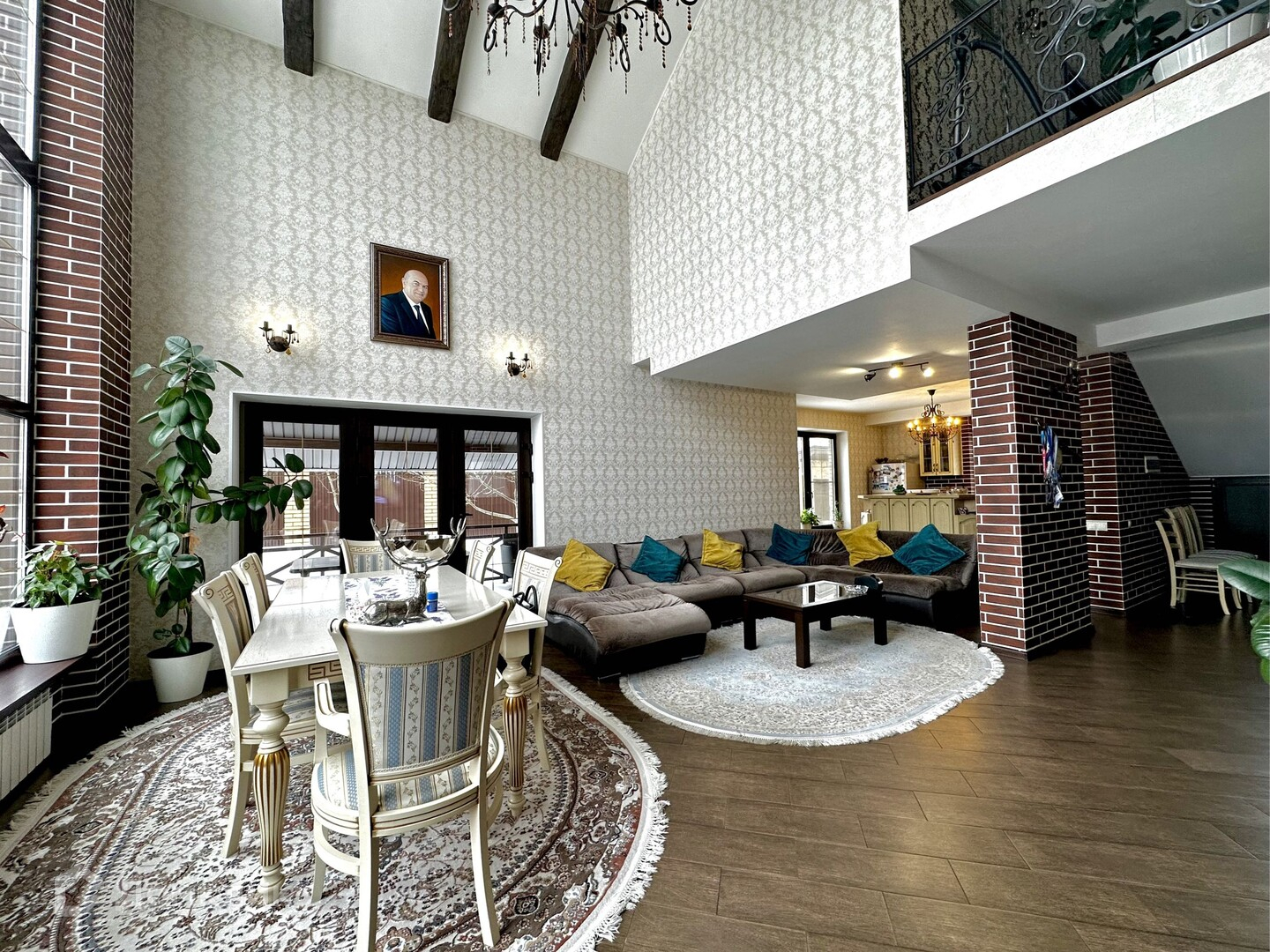 Дом в 2 этажа и мансарда: пять спален в самом доме, большая кухня-гостиная в 52 метра со всей встроенной техникой, большая 2 зонная мансардная часть, четыре санузла в основном доме, 1 возле бани и еще 1 в зоне прислуги, гардеробная, просторная гостиная с большими окнами и видом на участок, дом очень светлый, зона отдыха и сауной, помещение под котельную, гараж на один автомобиль и входом в дом. Перед домом так же можно поставить еще 3 автомобиля.