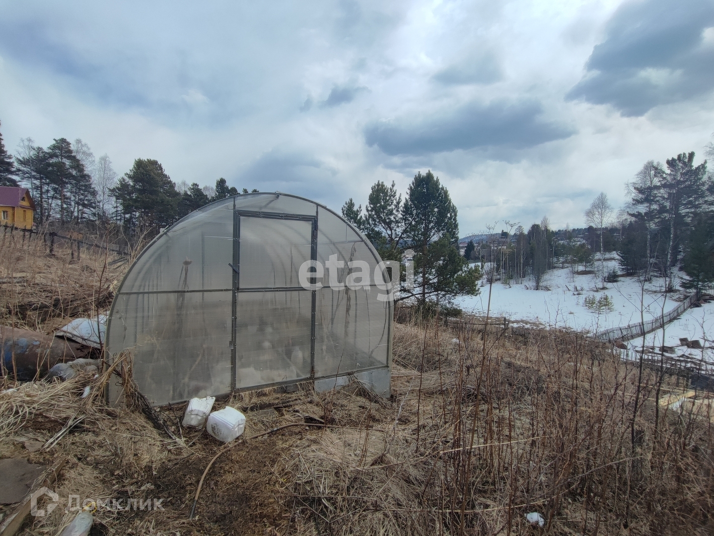 На территории имеется небольшая банька, пара теплиц, бак для воды.