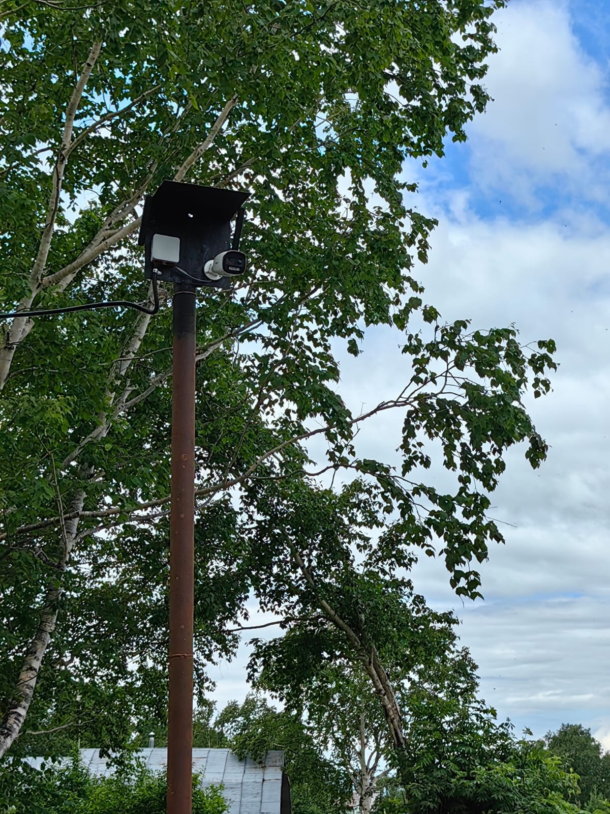 Территория дома за шлагбаумом и под видео наблюдением.