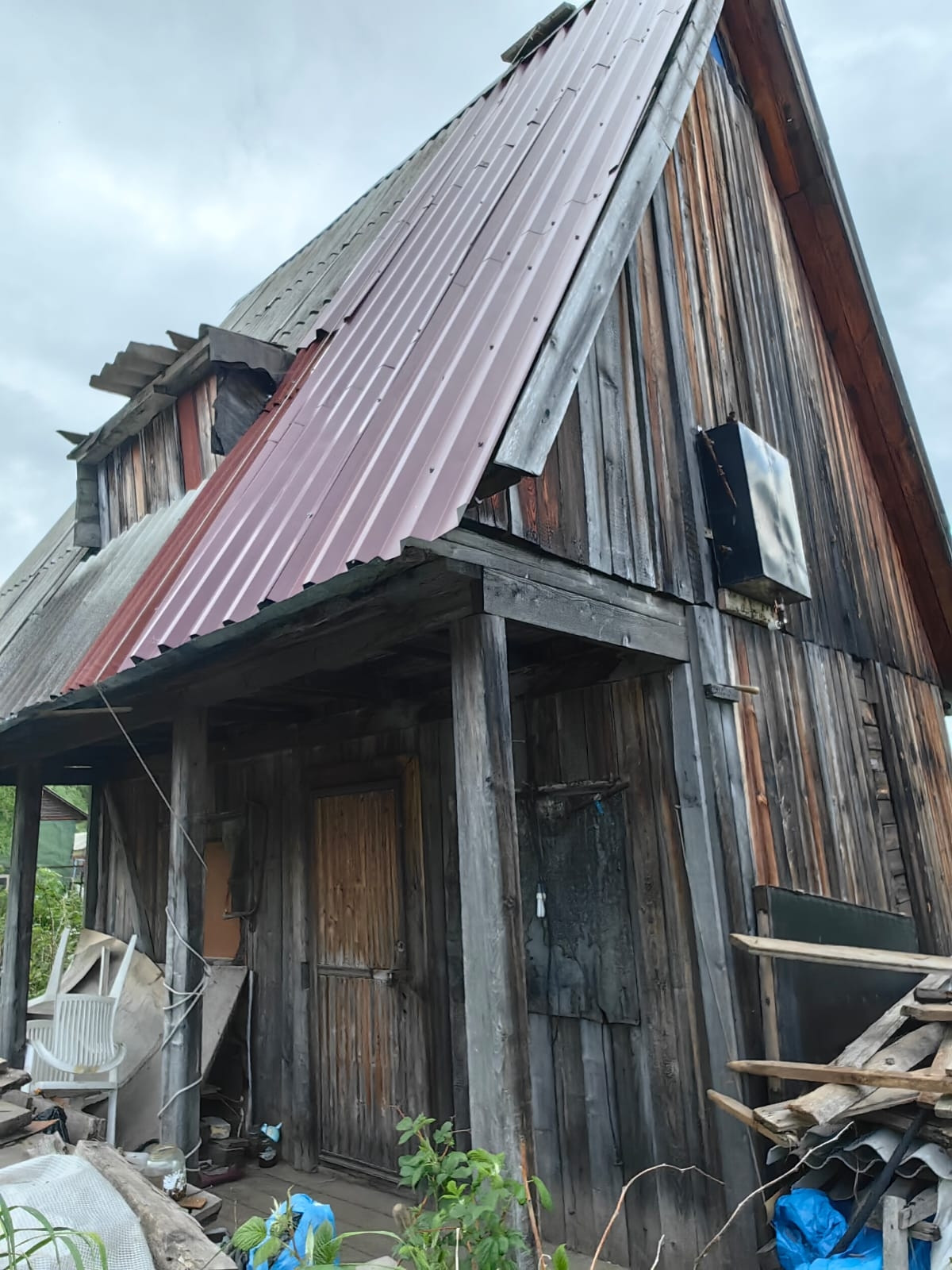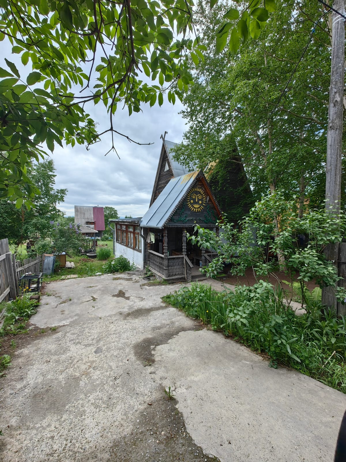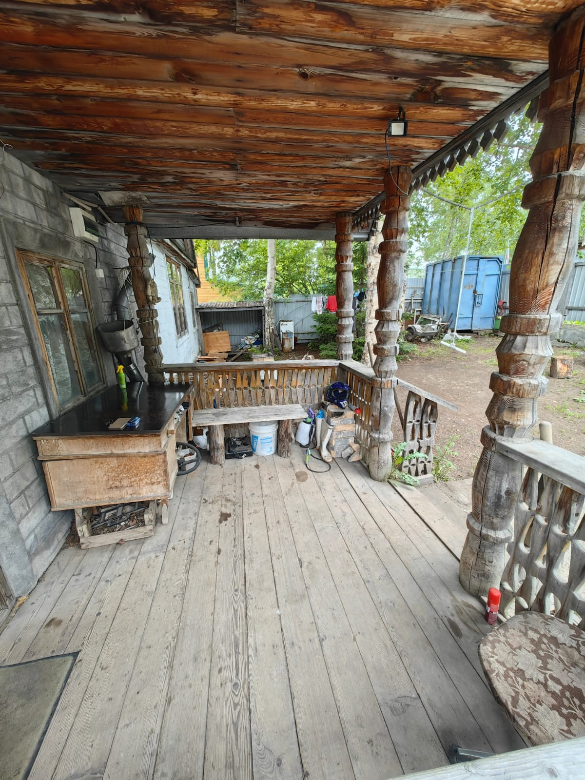 Деревянная беседка на солнечной стороне дома.