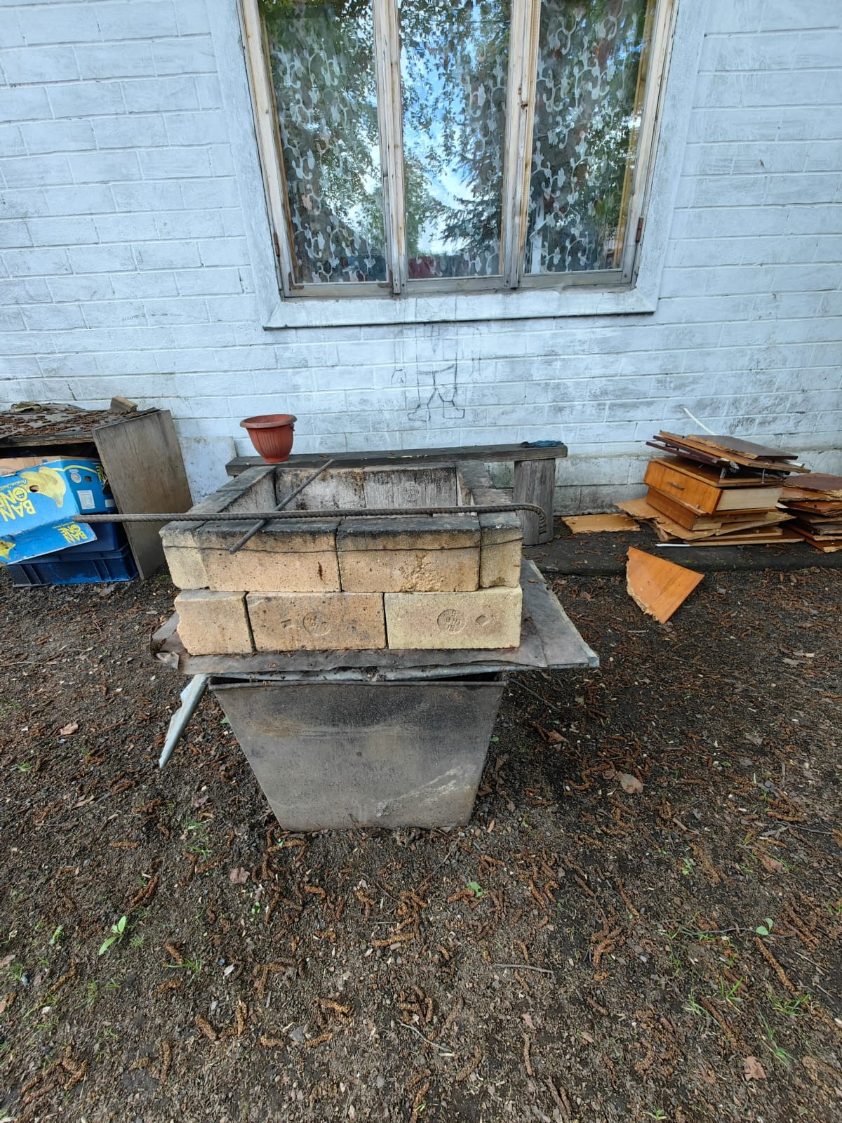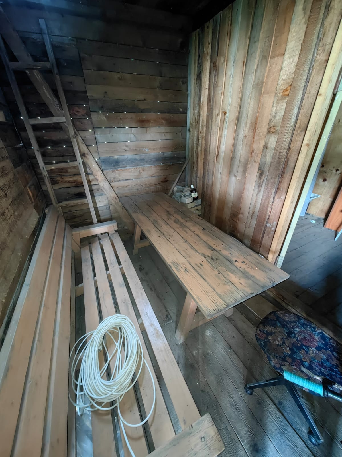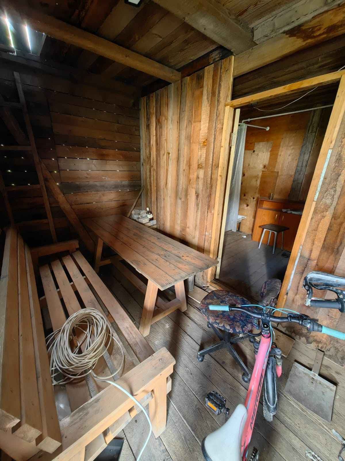 Деревянная беседка на солнечной стороне дома.
