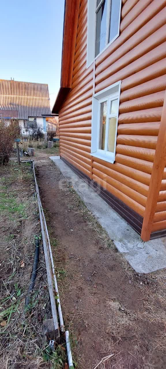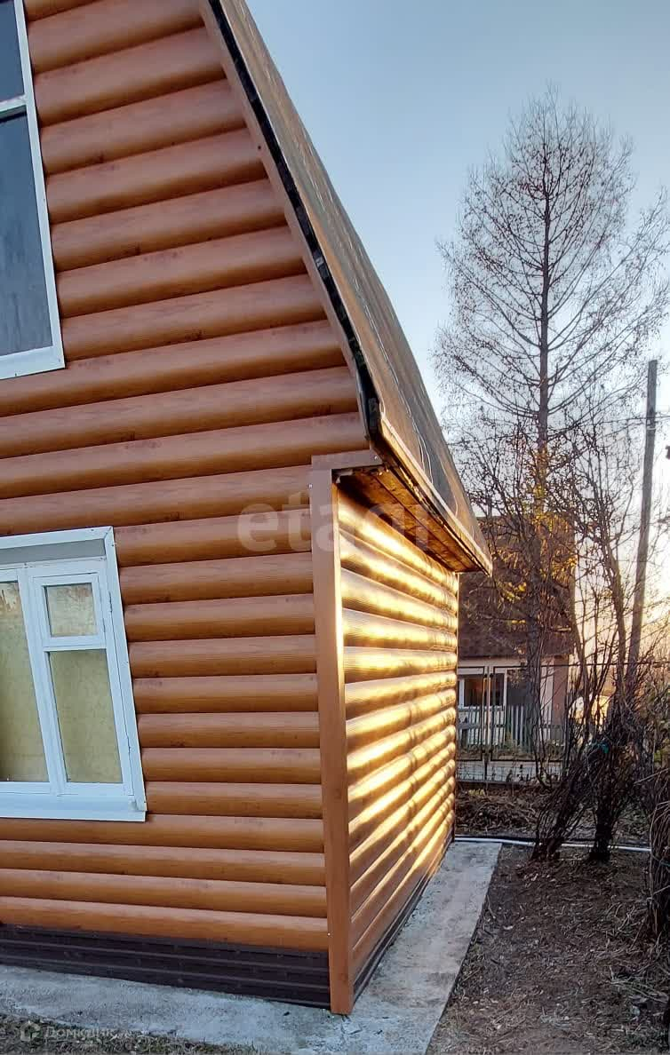 На участке имеется 2-х этажный дом с мансардным этажом. На первом этаже расположены кухня и комната, а на втором этаже находится мансардная комната. Вода заведена в дом, подается по сезону, электричество и проезд круглый год. Дом построен из бруса Камчатской лиственницы, с наружи утеплен базальтовым утеплителем с применением паро-гидроизоляции и обшит металло-сайдингом под бревно. Внутри дом обшит канадским OSB 9 мм.