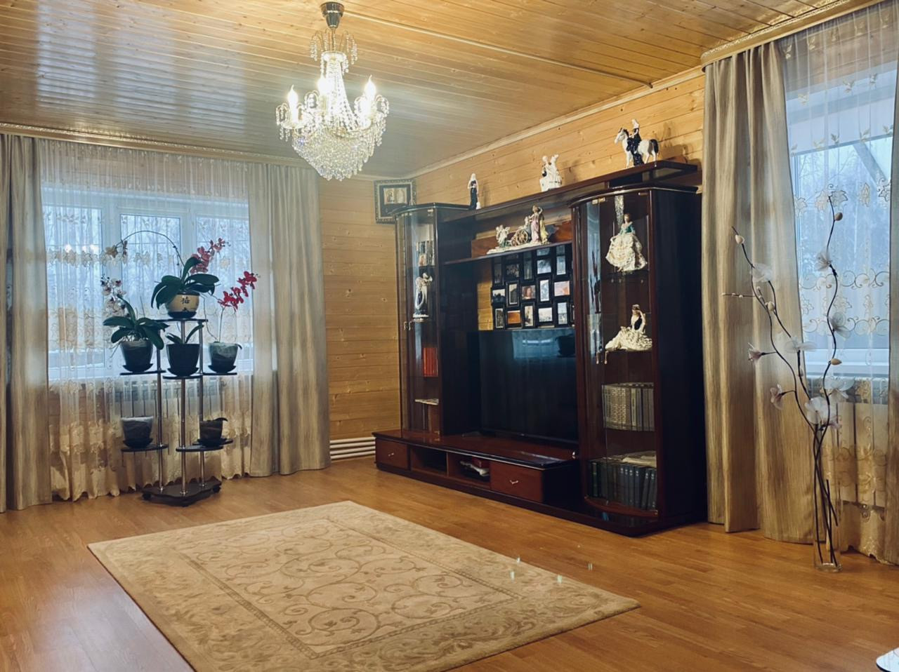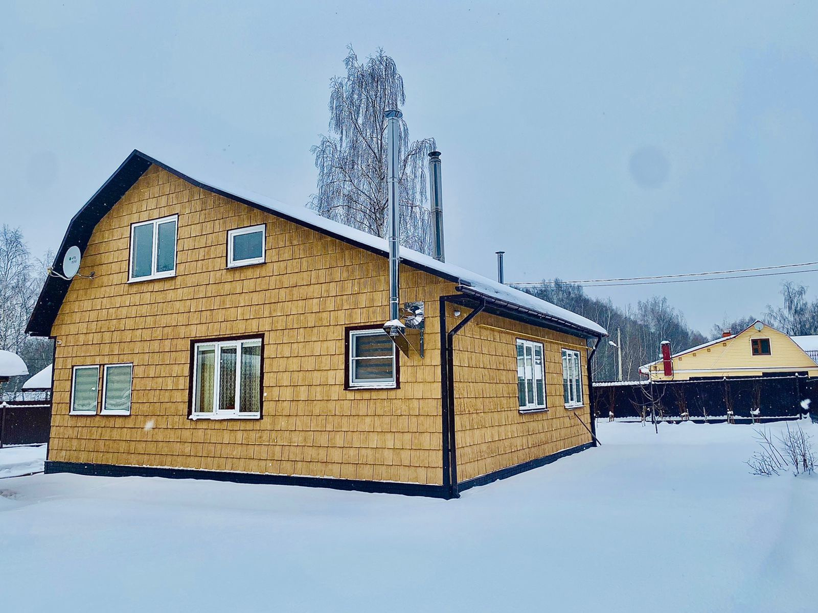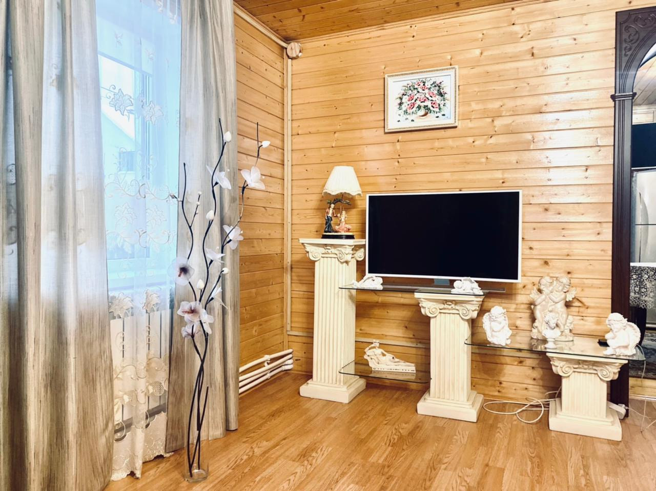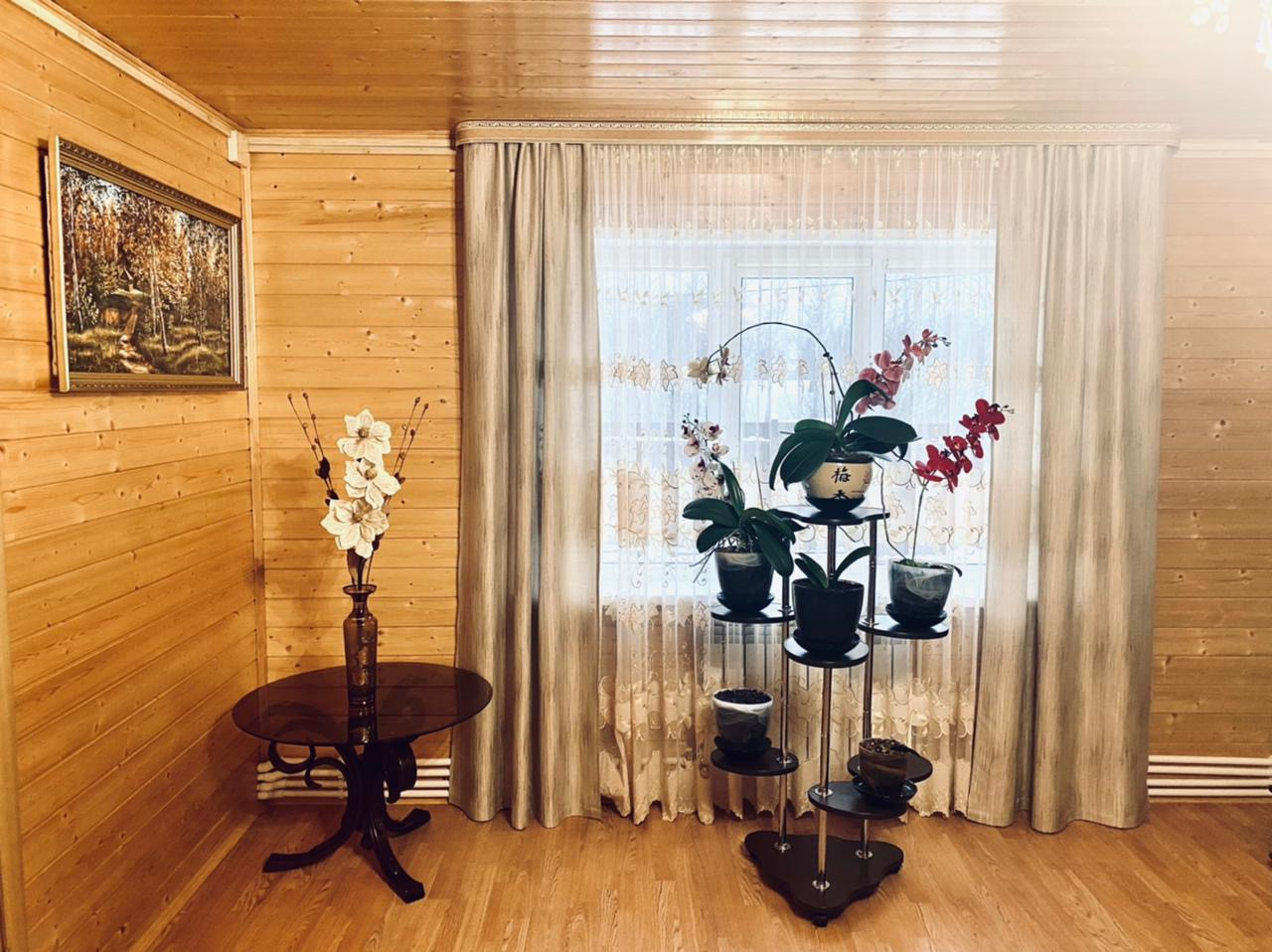Дом очень светлый и тёплый 130 кв.м., двухэтажный, выполнен из бруса, внешняя отделка сайдинг. Дом полностью утеплён.