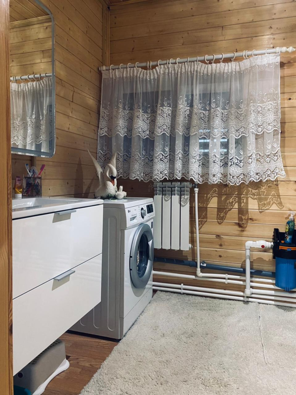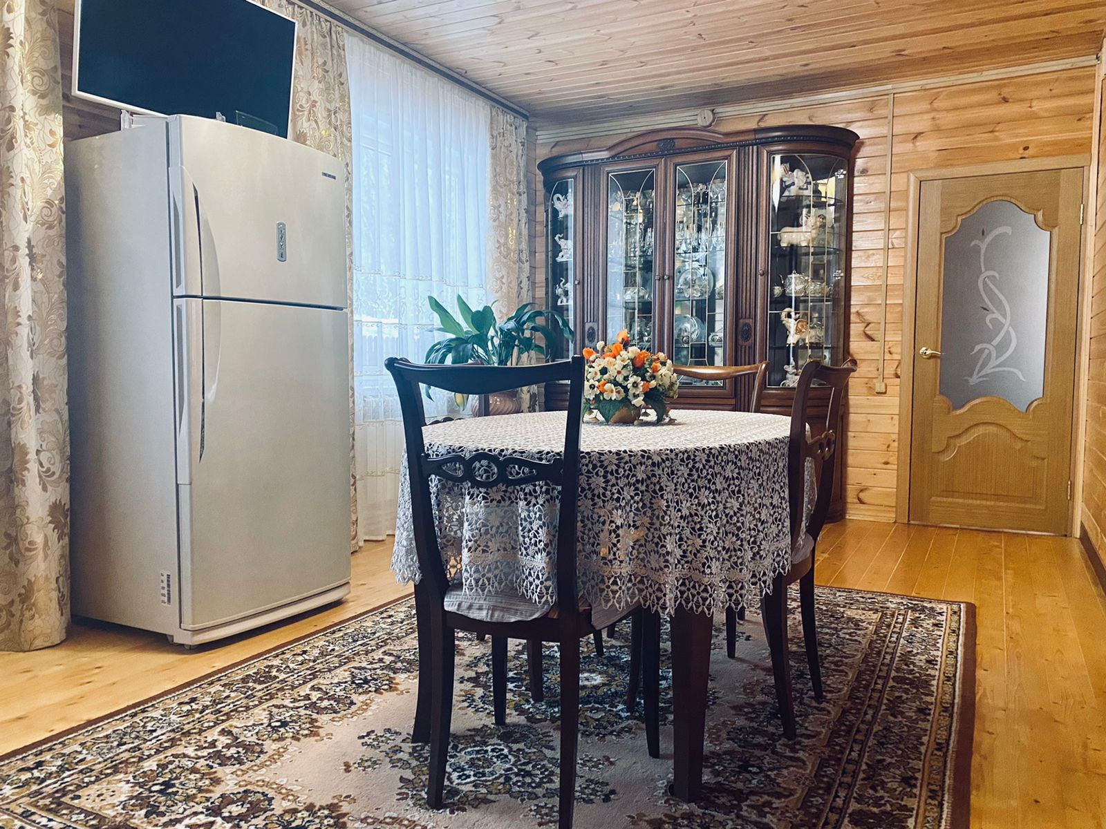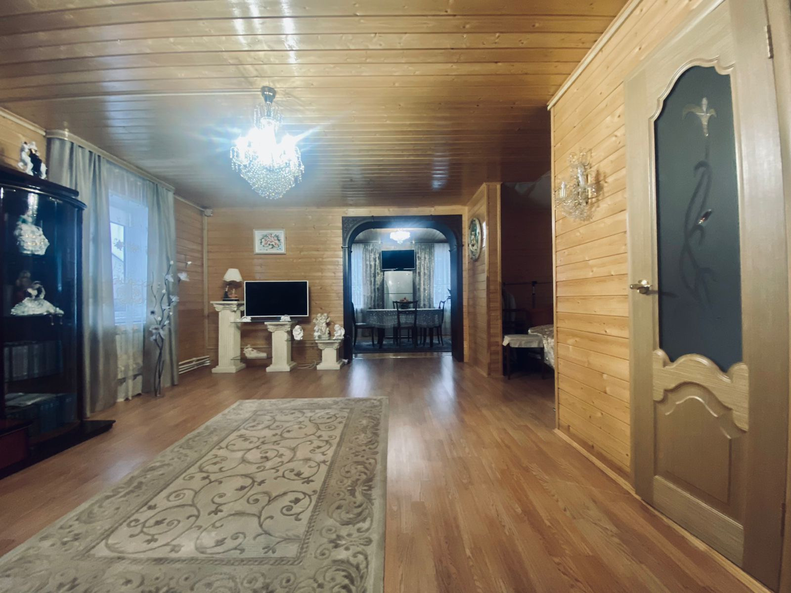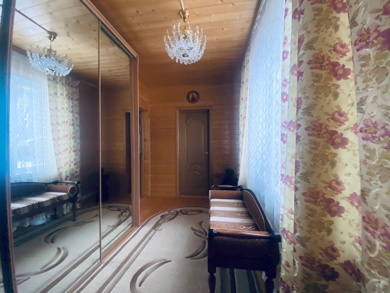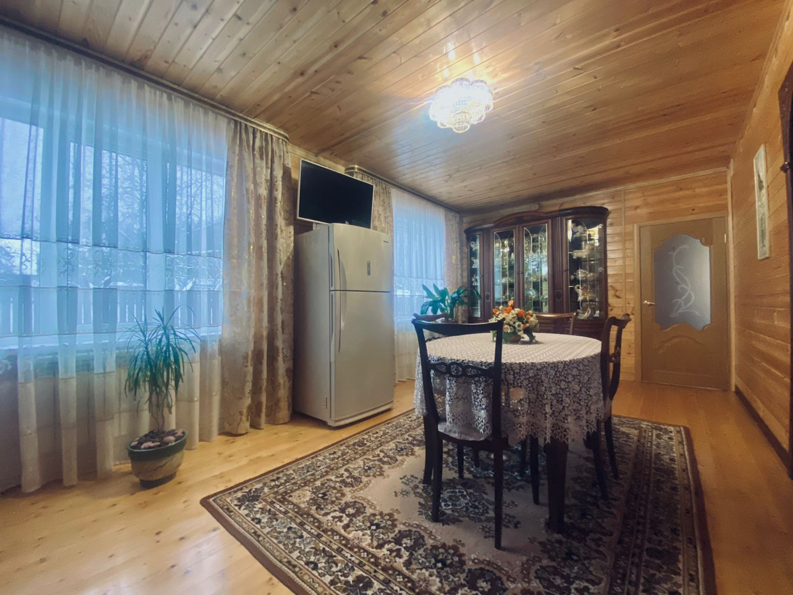 Дом очень светлый и тёплый 130 кв.м., двухэтажный, выполнен из бруса, внешняя отделка сайдинг. Дом полностью утеплён.