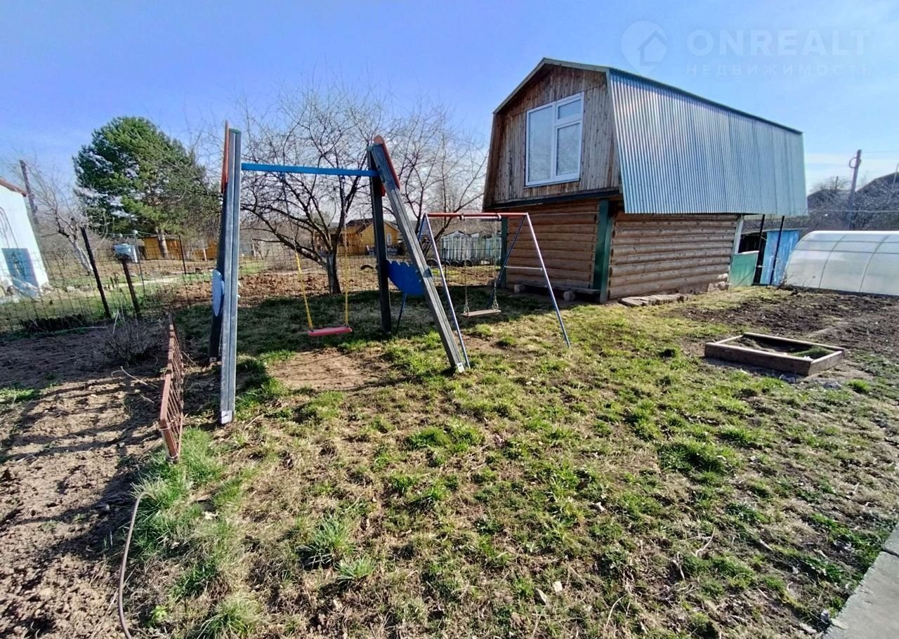 Так же есть уютная беседка для отдыха, и детская площадка с двумя качелями засеянная газонной травой.