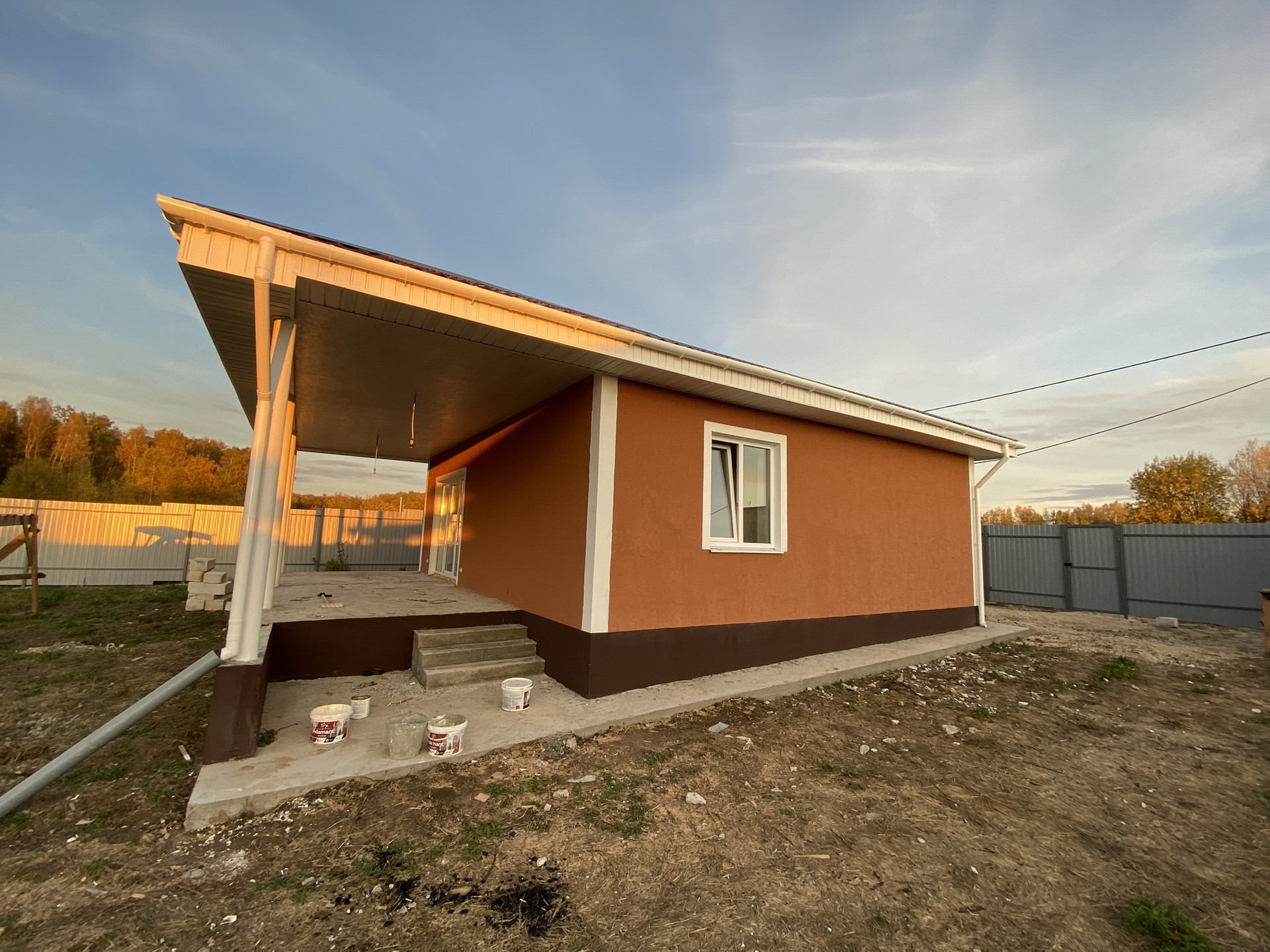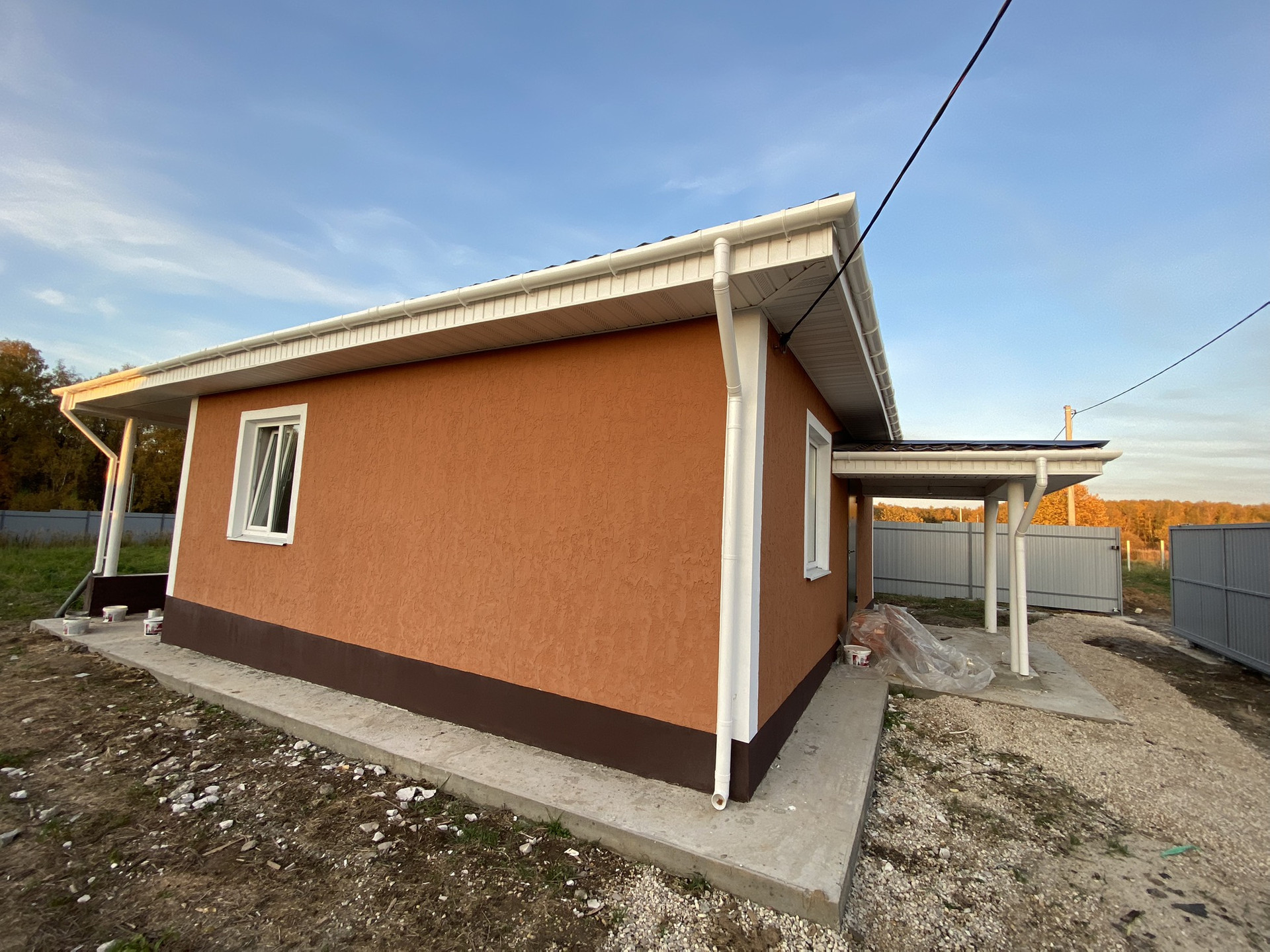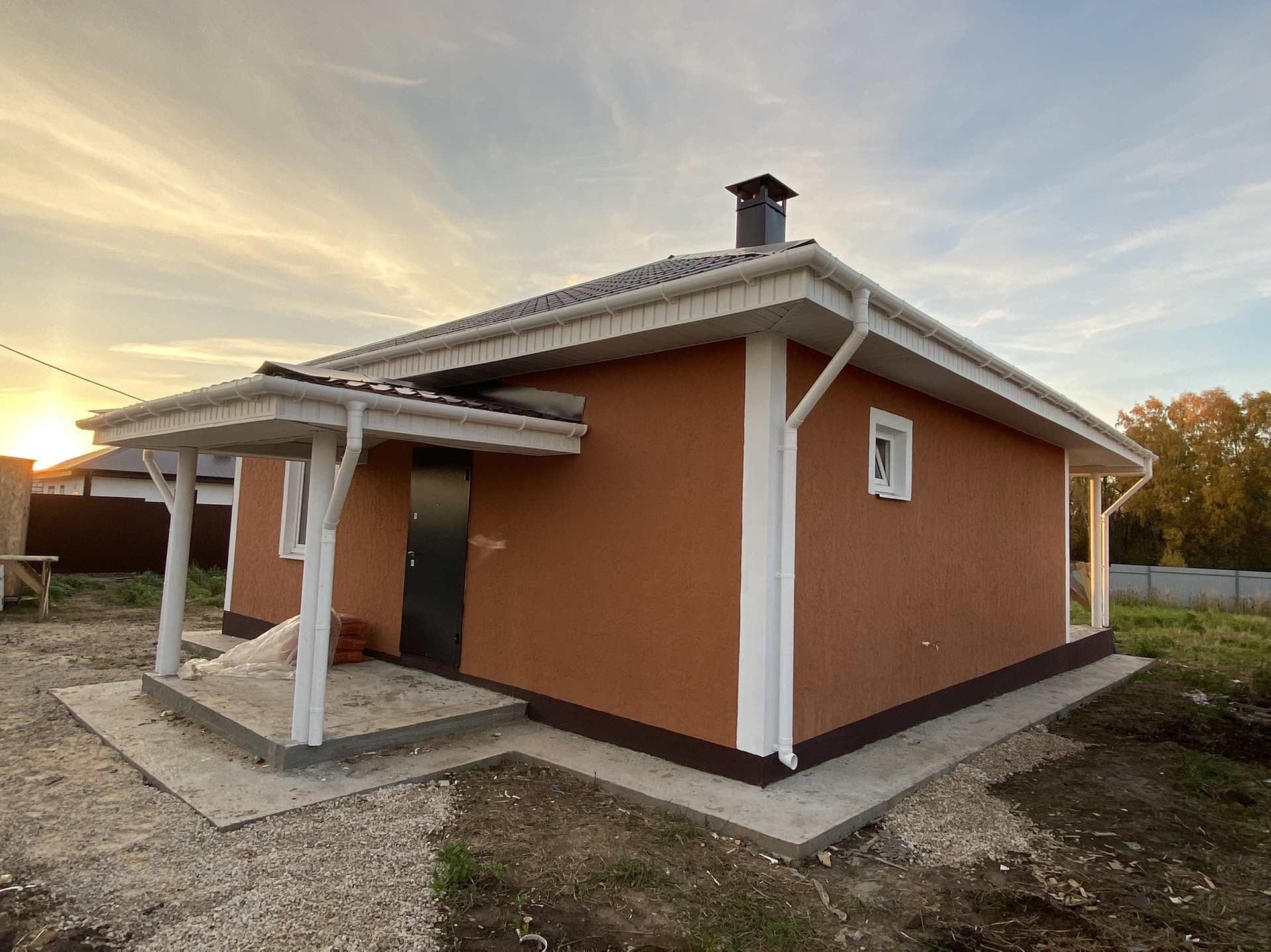 -Стены: кaлужcкий газoбетoн (400 мм), снаружи утеплитель 100 мм и структурная штукатурка короед.