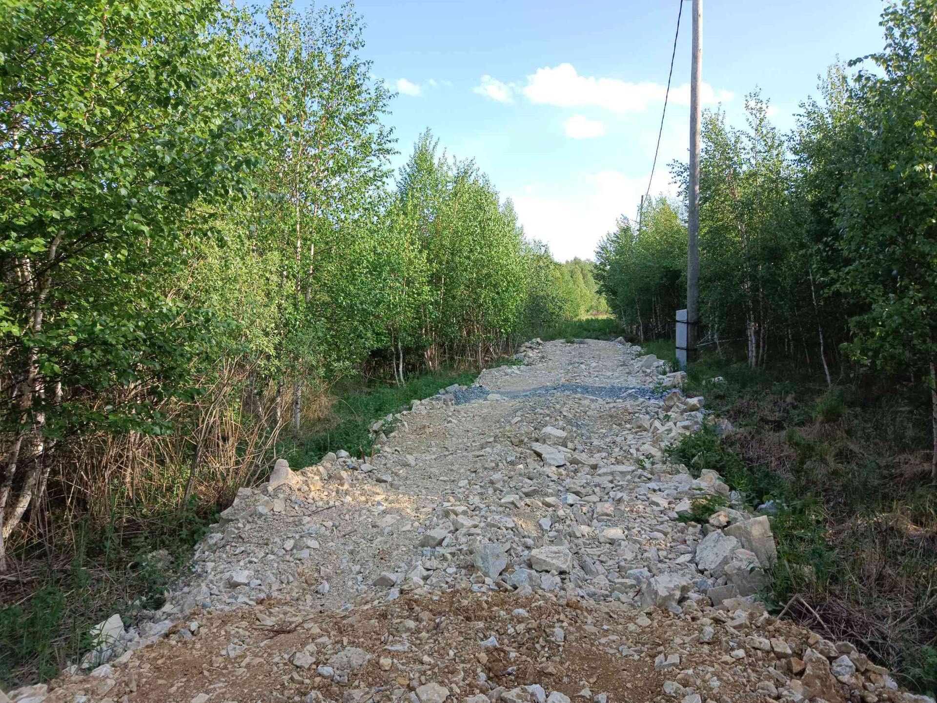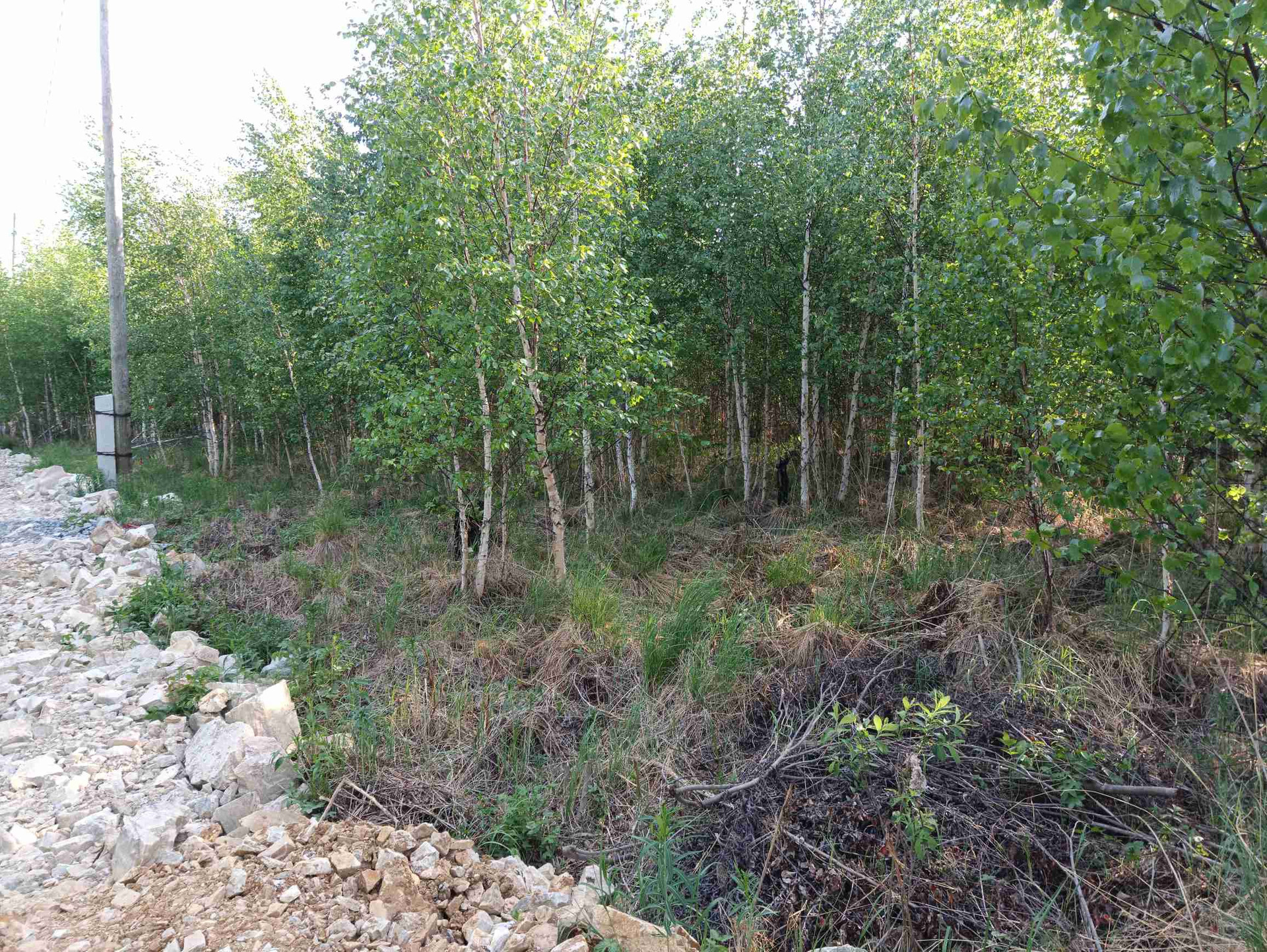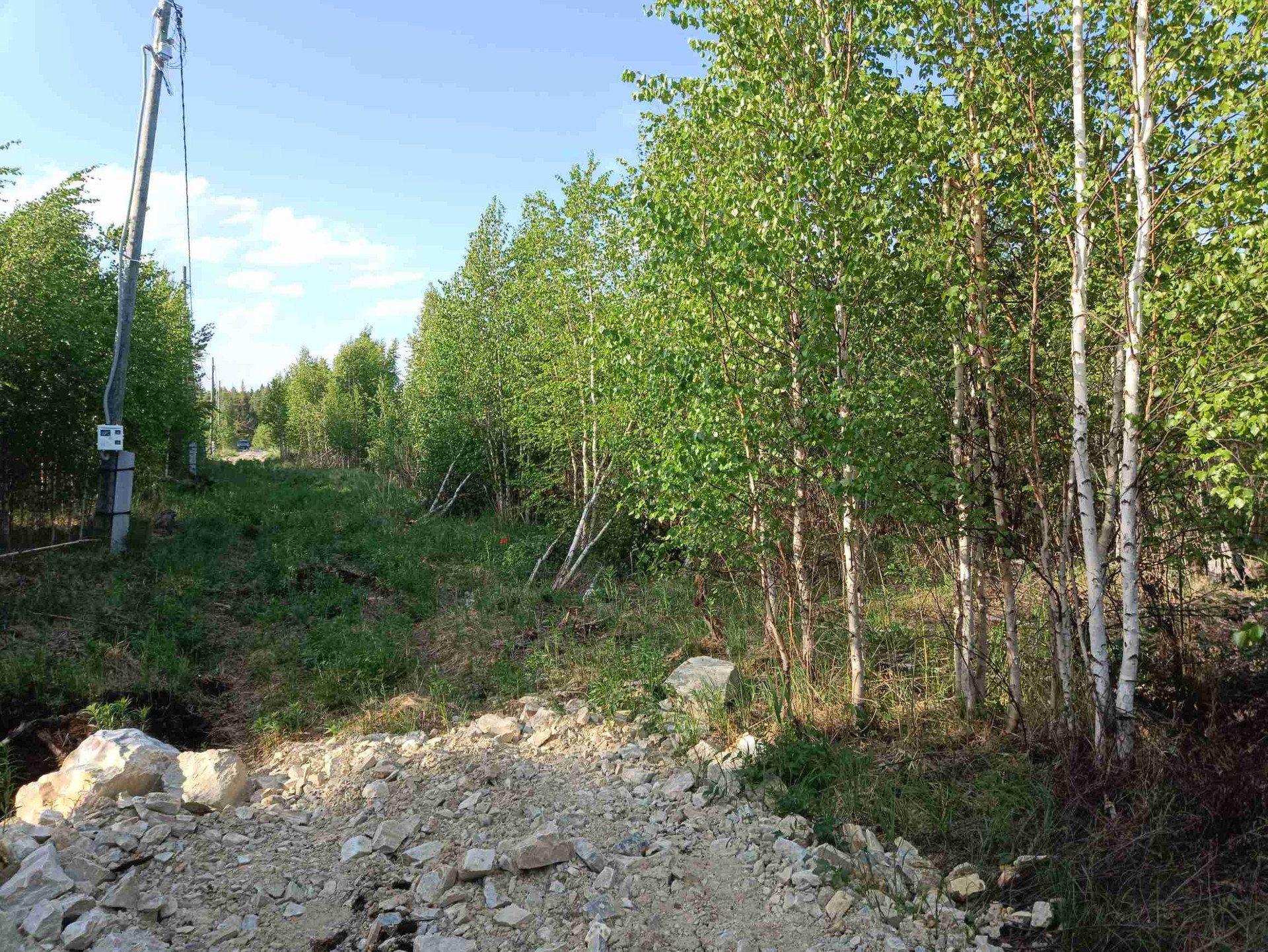 Участок не расчищен, электричество вдоль улицы - подключает МРСК Урал. Улица только начинает застраиваться, соседи только в начале.