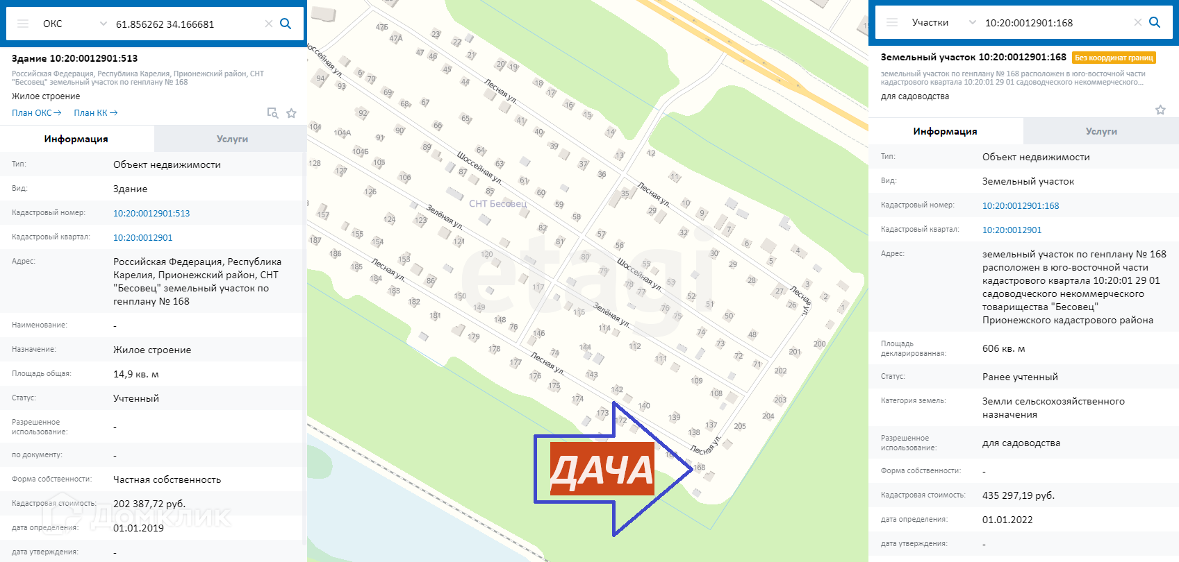Номер в базе: 9956712. Район: Бесовец СНТ
