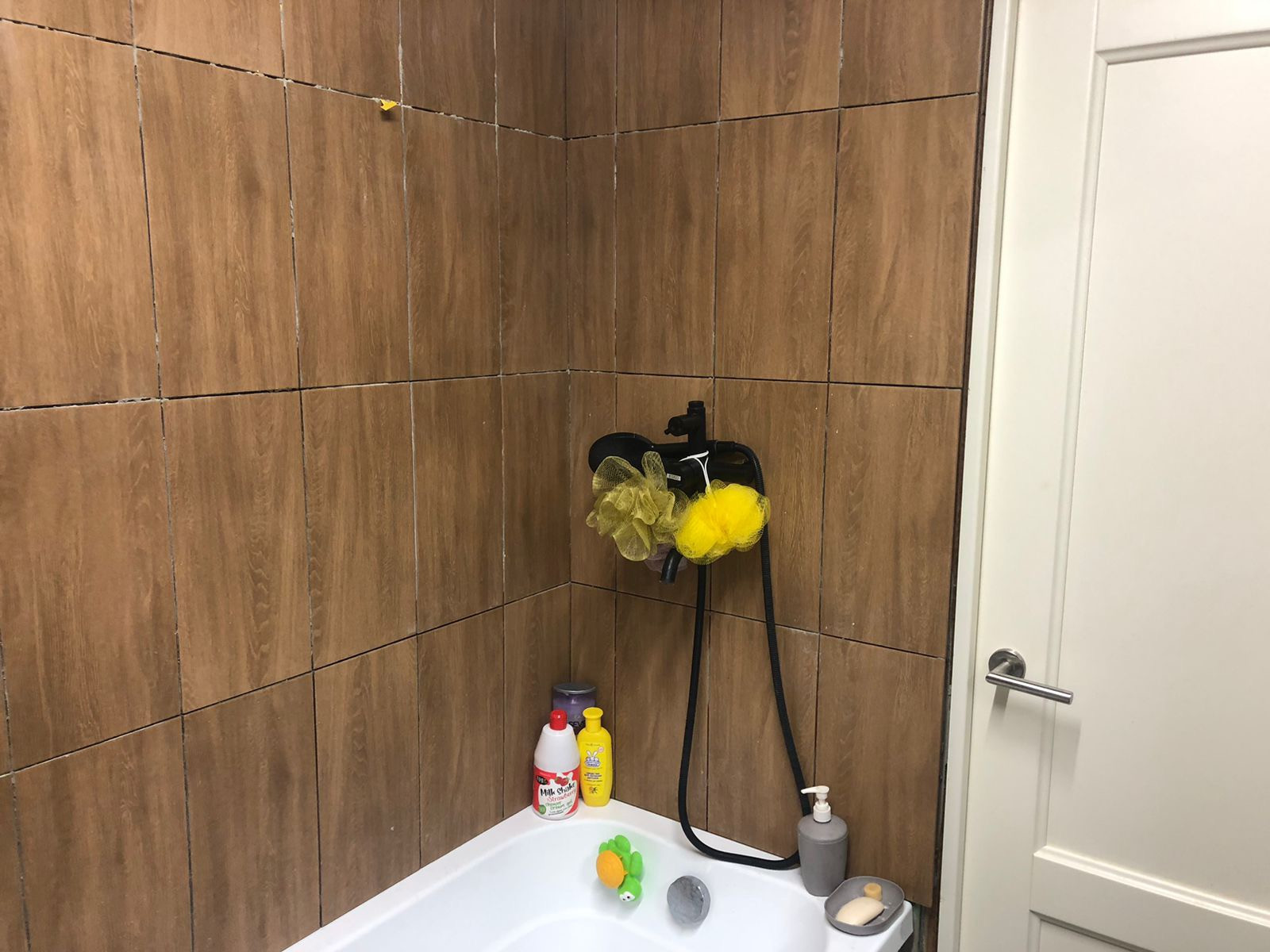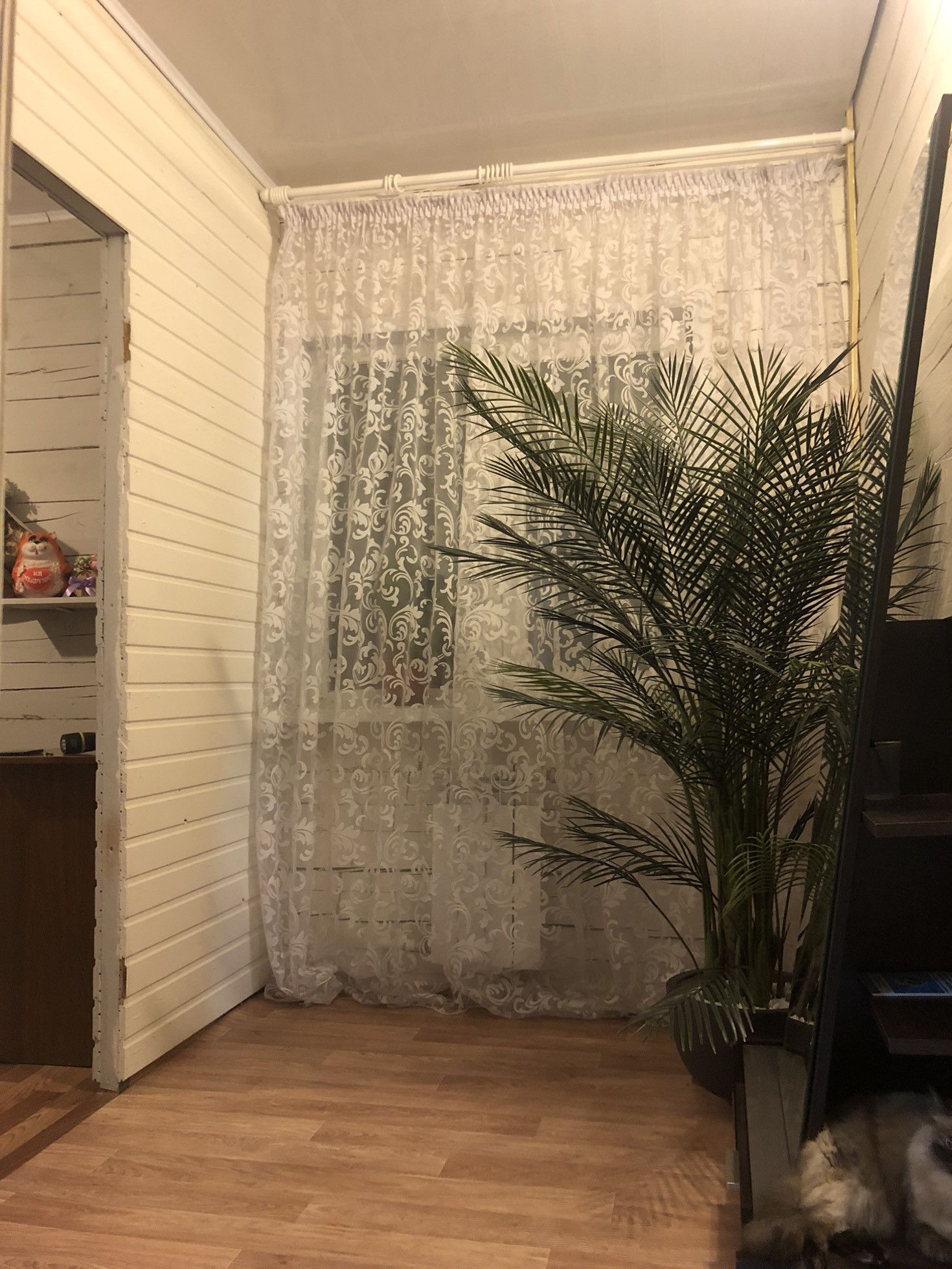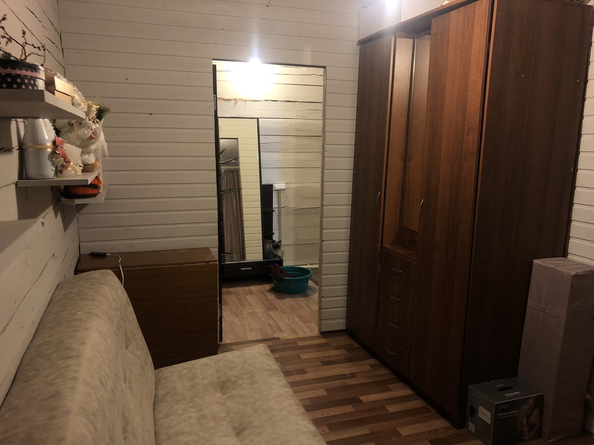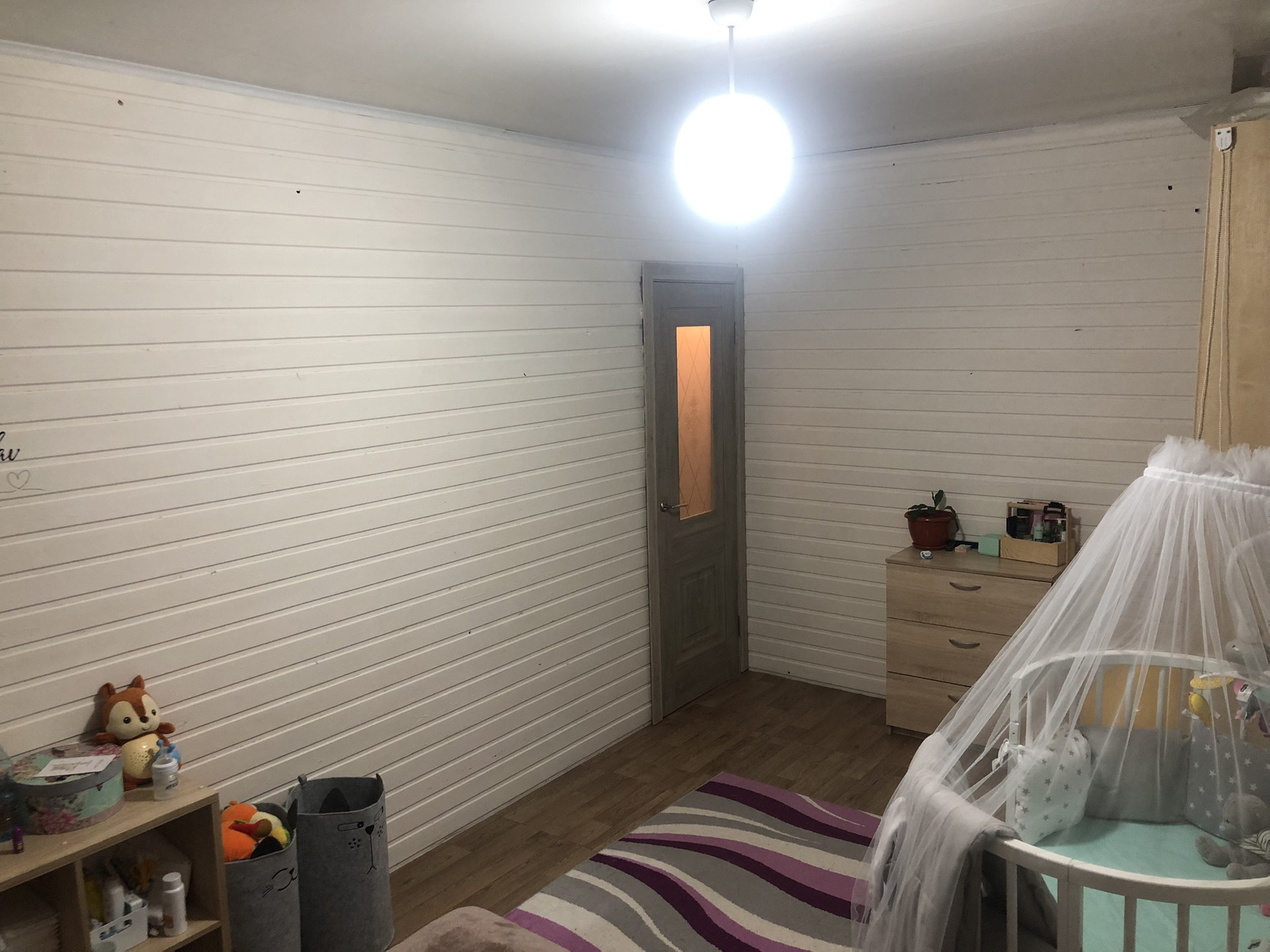 Стены выкрашены в белый цвет, в зоне кухни фартук выложен кафелем, в ванной комнате,почти, закончен капитальный ремонт (стены и пол выровнены и отделаны кафелем, установлена полноценная ванна, хороший смеситель с тропическим душем, дорогая межкомнатная дверь, теплый пол), входная дверь с терморазрывом.