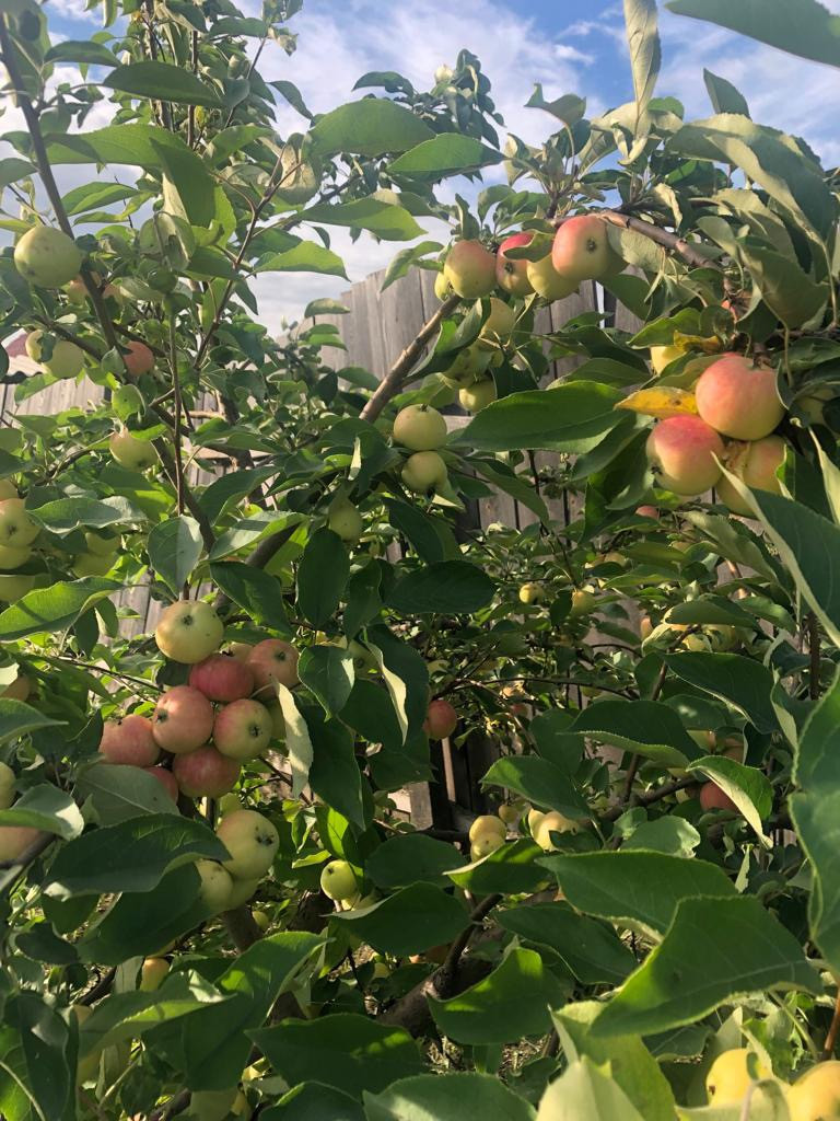 Огорода нет, стригли газон, из насаждений имеется яблоня, жимолость, крыжовник, смородина, ирга, слива.
