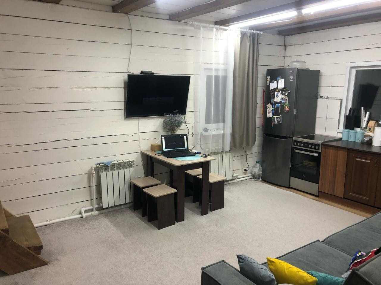Все коммуникации выведены в котельную, в доме остался только глубинный насос, никаких посторонних шумов, живете как в квартире.