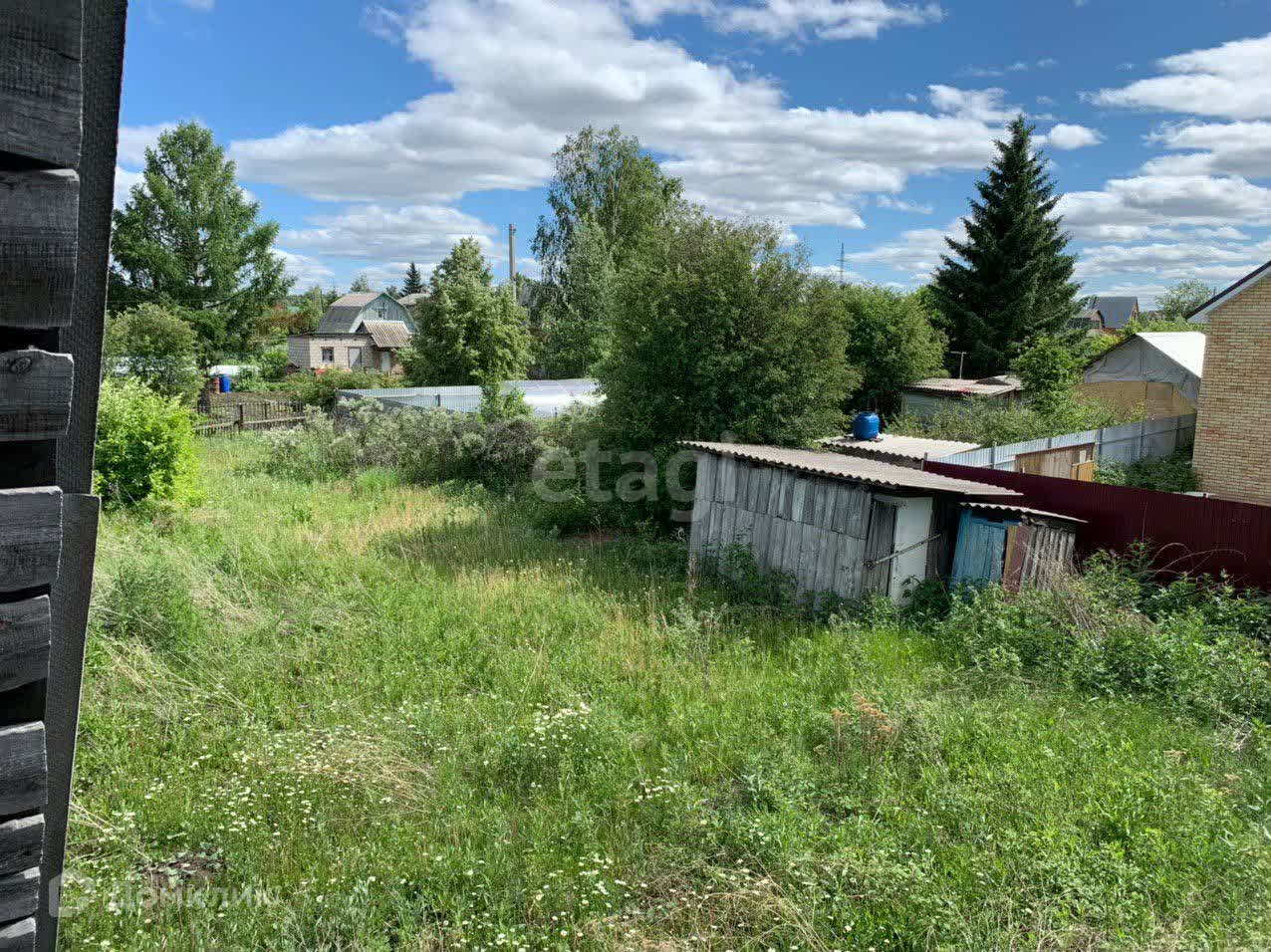 Участок разработан, есть все посадки, для садового инвентаря имеется деревянный сарай.