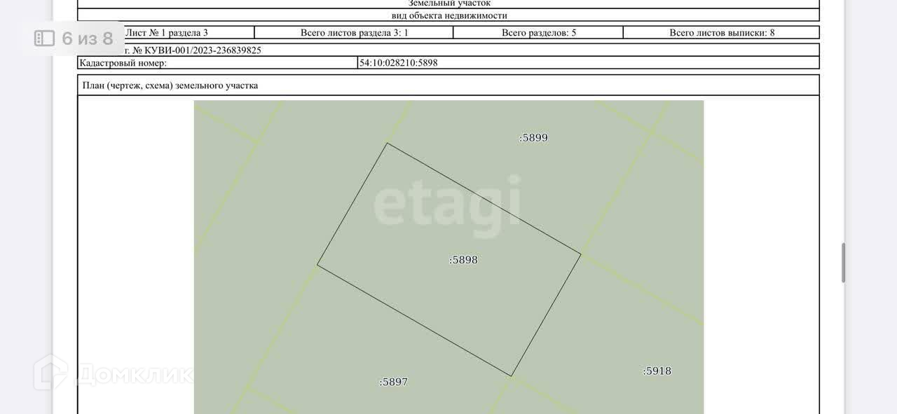 - кадастровый номер 54:10:028210:5898