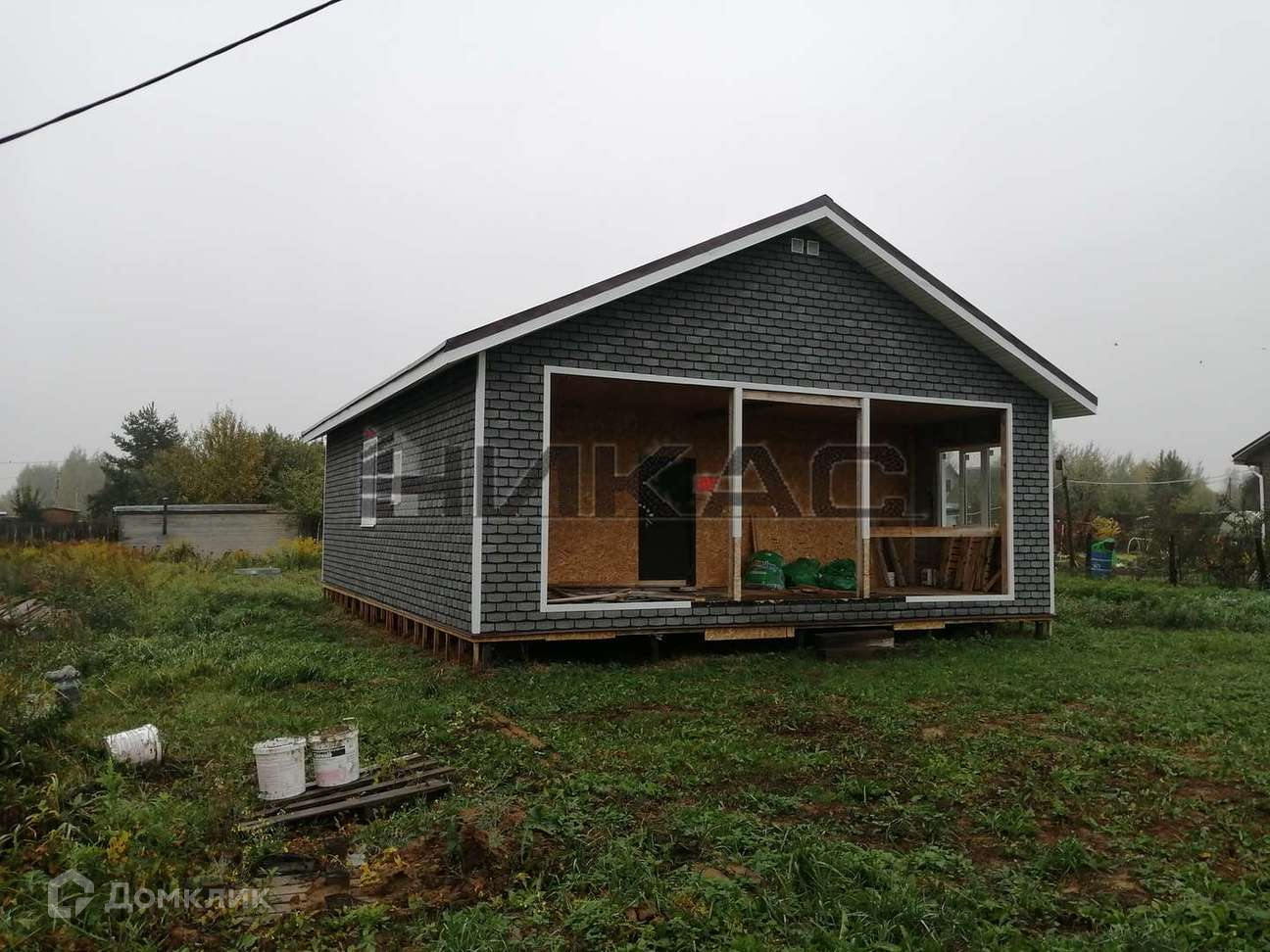 Продается дом 1-этажный каркасный без внутренней отделки в СНТ Бор, фундамент- винтовые сваи, в 6 км от Ярославля, участок 9,24 соток , проживание круглогодичное. При въезде в СНТ установлены автоматические ворота, видеонаблюдение. Дом обшит фасадной плиткой НАUВЕRК, крыша- гибкая черепица (технониколь). Окна установлены ПВХ, толщина профиля 70 мм. Утепление 200 мм перекрестное.