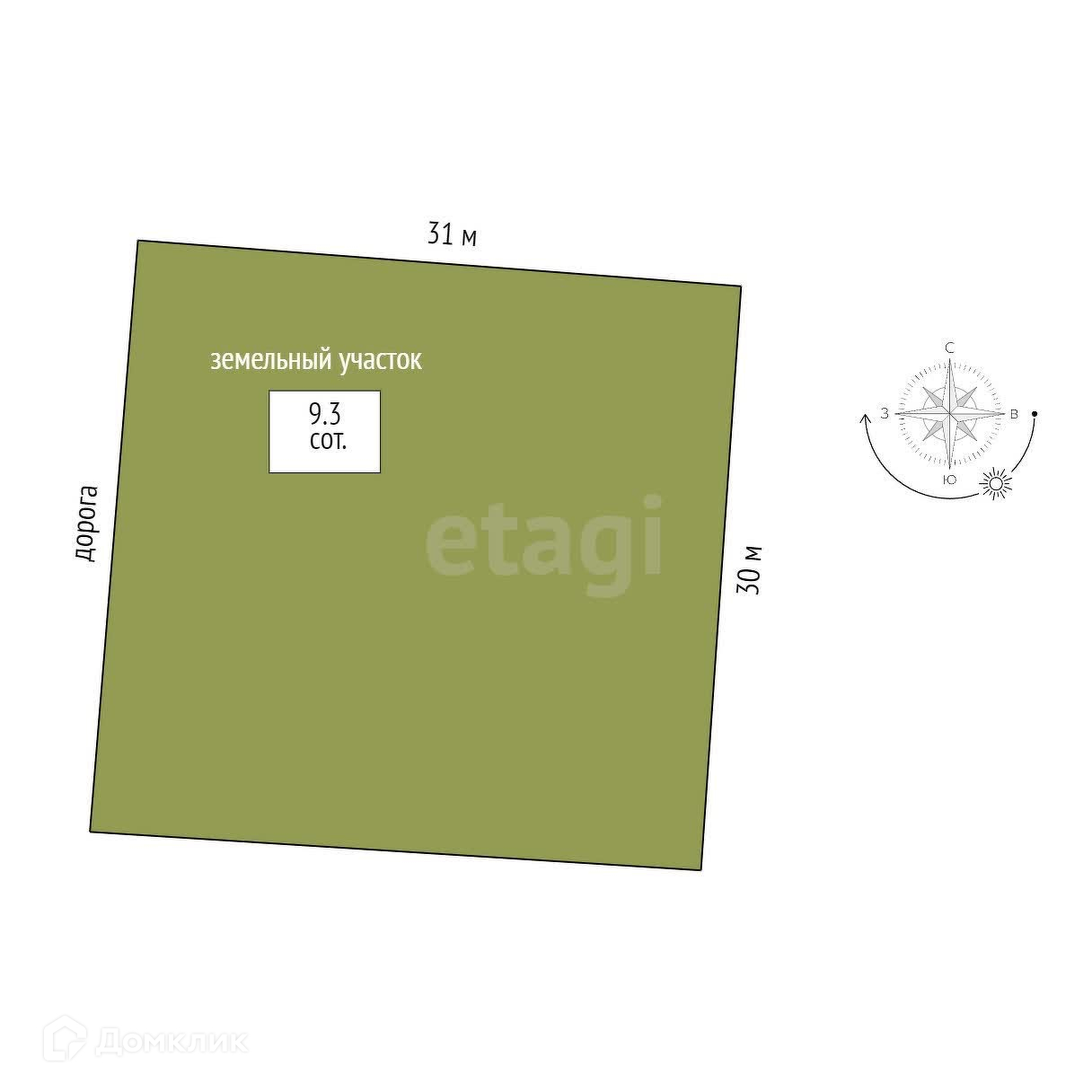 Площадь участка 9.3 сот.